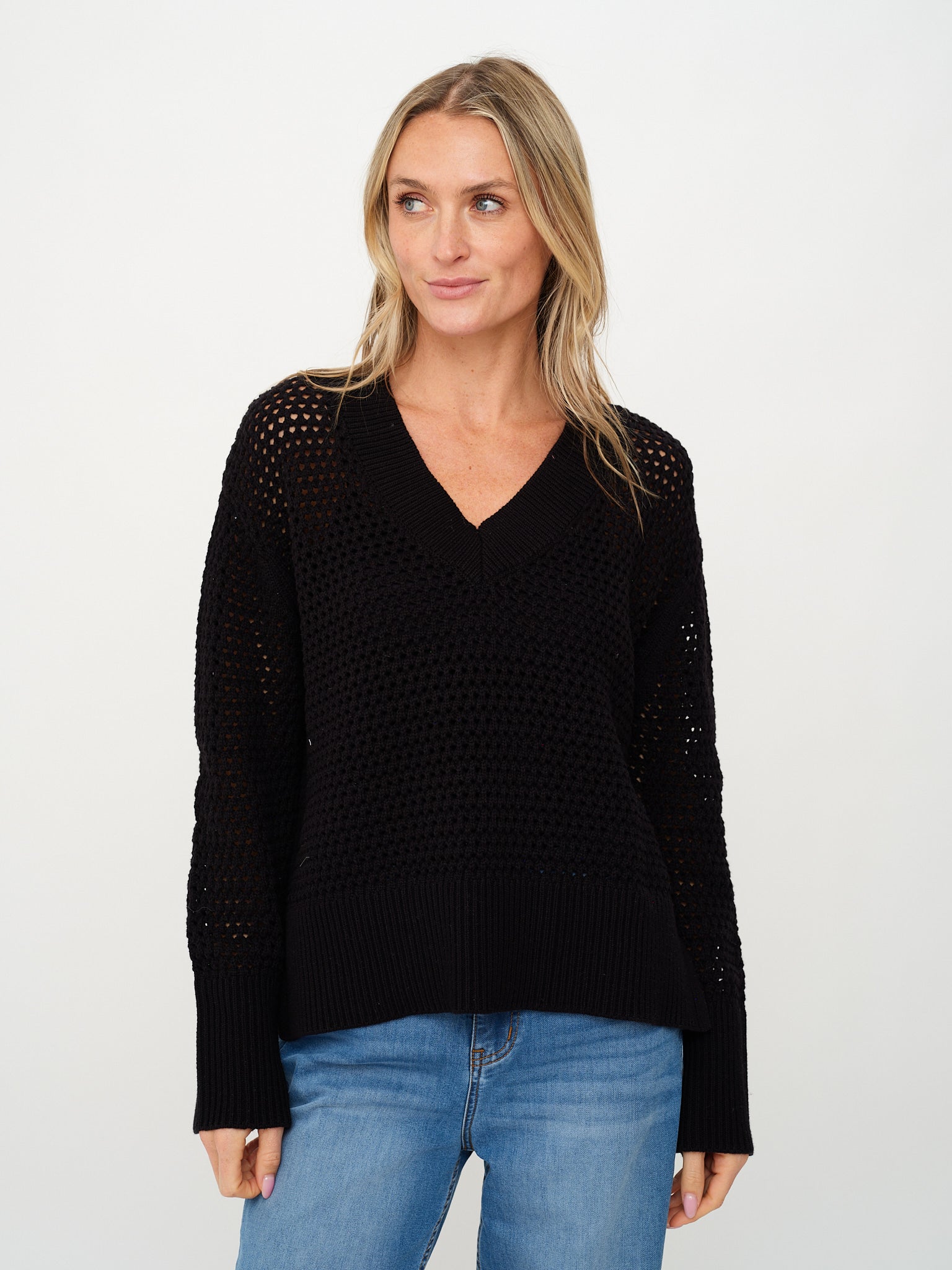 Get ready to get cozy and stylish with the Cameron Sweater! Made from soft crochet material, this sweater features a v-neck design for ultimate comfort and fashion. Perfect for chilly days and lounging in style.