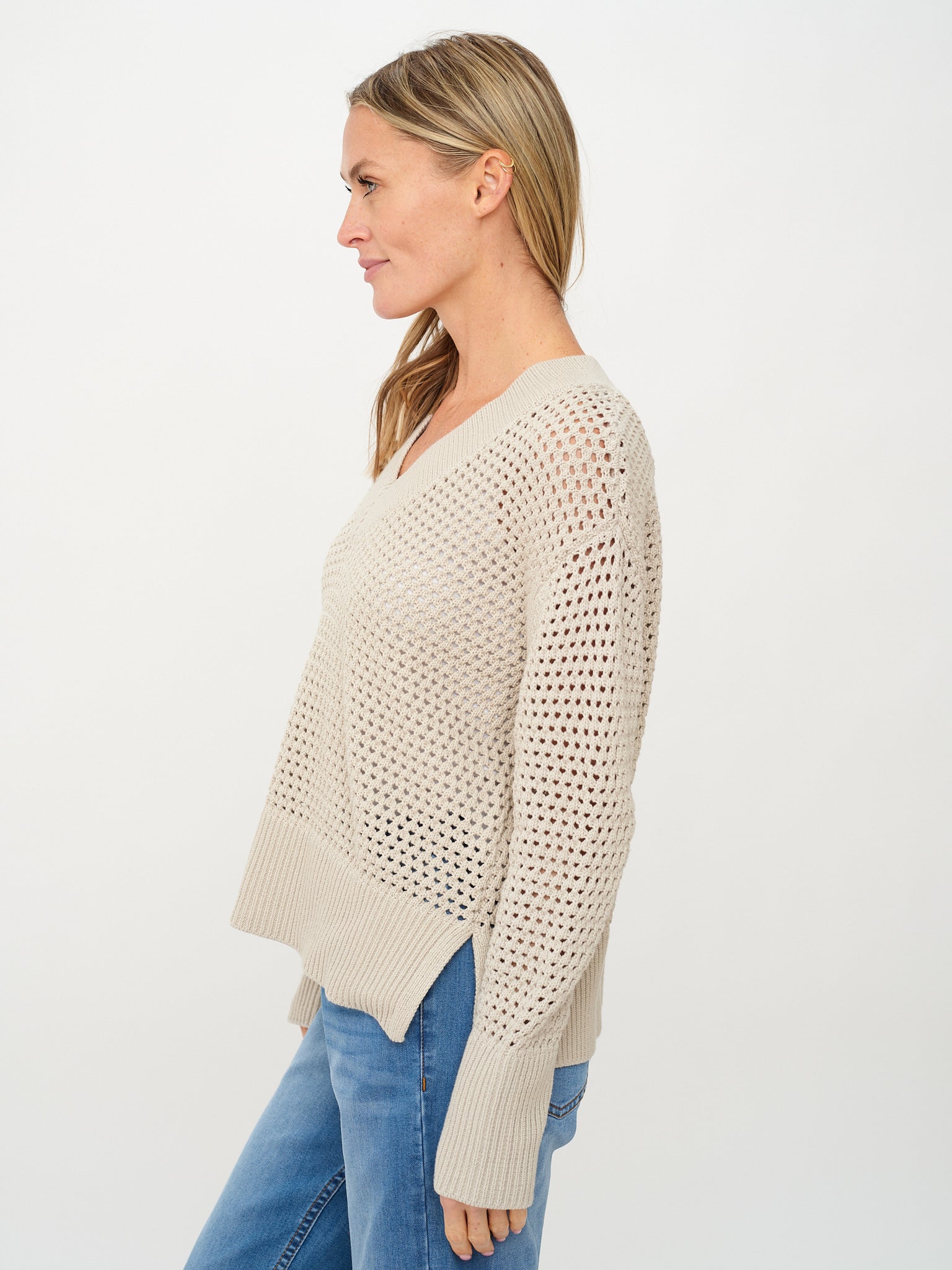 Get ready to get cozy and stylish with the Cameron Sweater! Made from soft crochet material, this sweater features a v-neck design for ultimate comfort and fashion. Perfect for chilly days and lounging in style.
