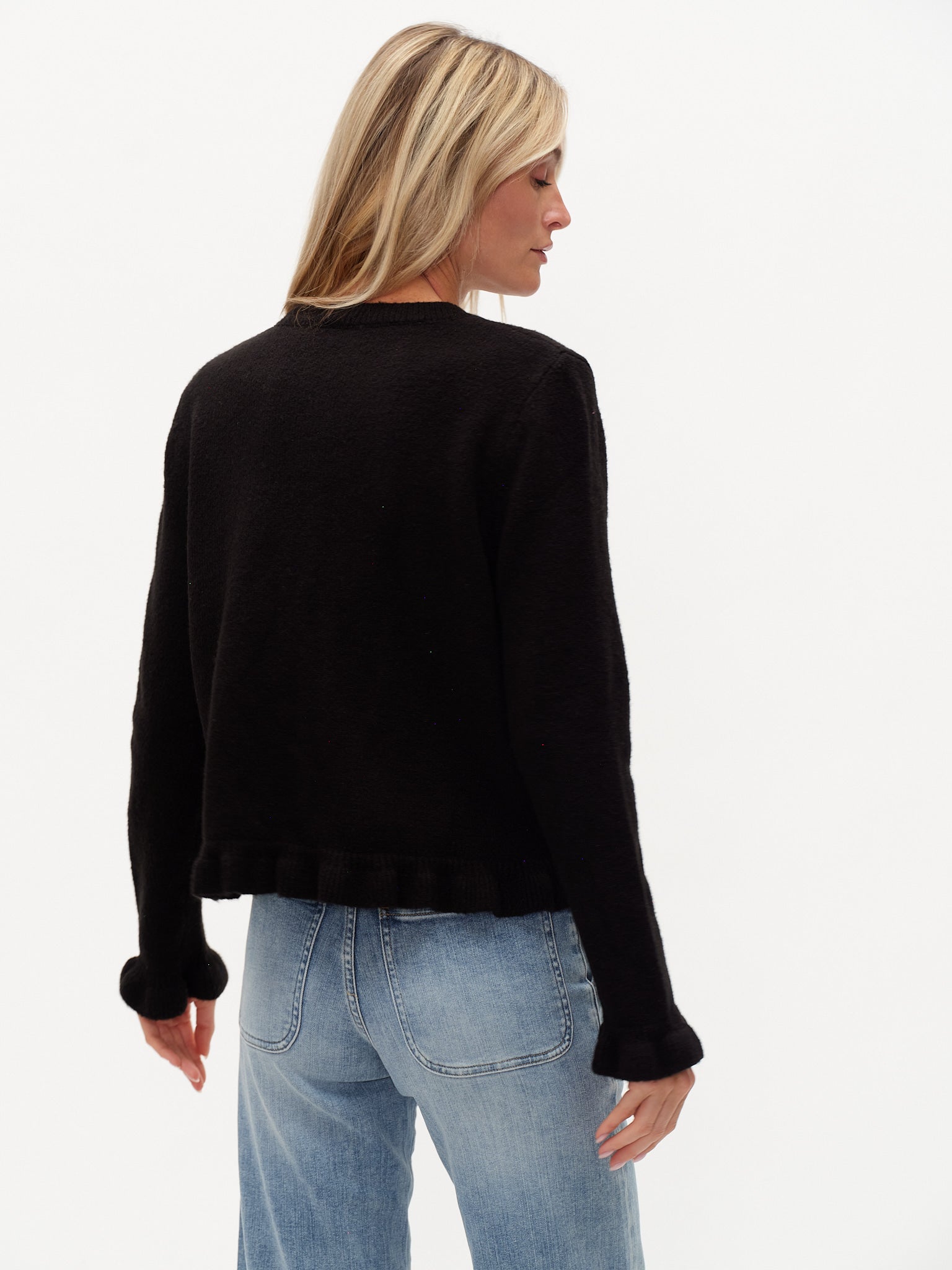 Embrace effortless style with the Chelsea Cardigan. This lightweight, soft cardigan features delicate ruffle cuffs and hem for a feminine touch, paired with a classic crew neck and shell buttons for timeless appeal. Cozy yet breathable, it’s perfect for layering on cool days while adding a subtle flair to your outfit.