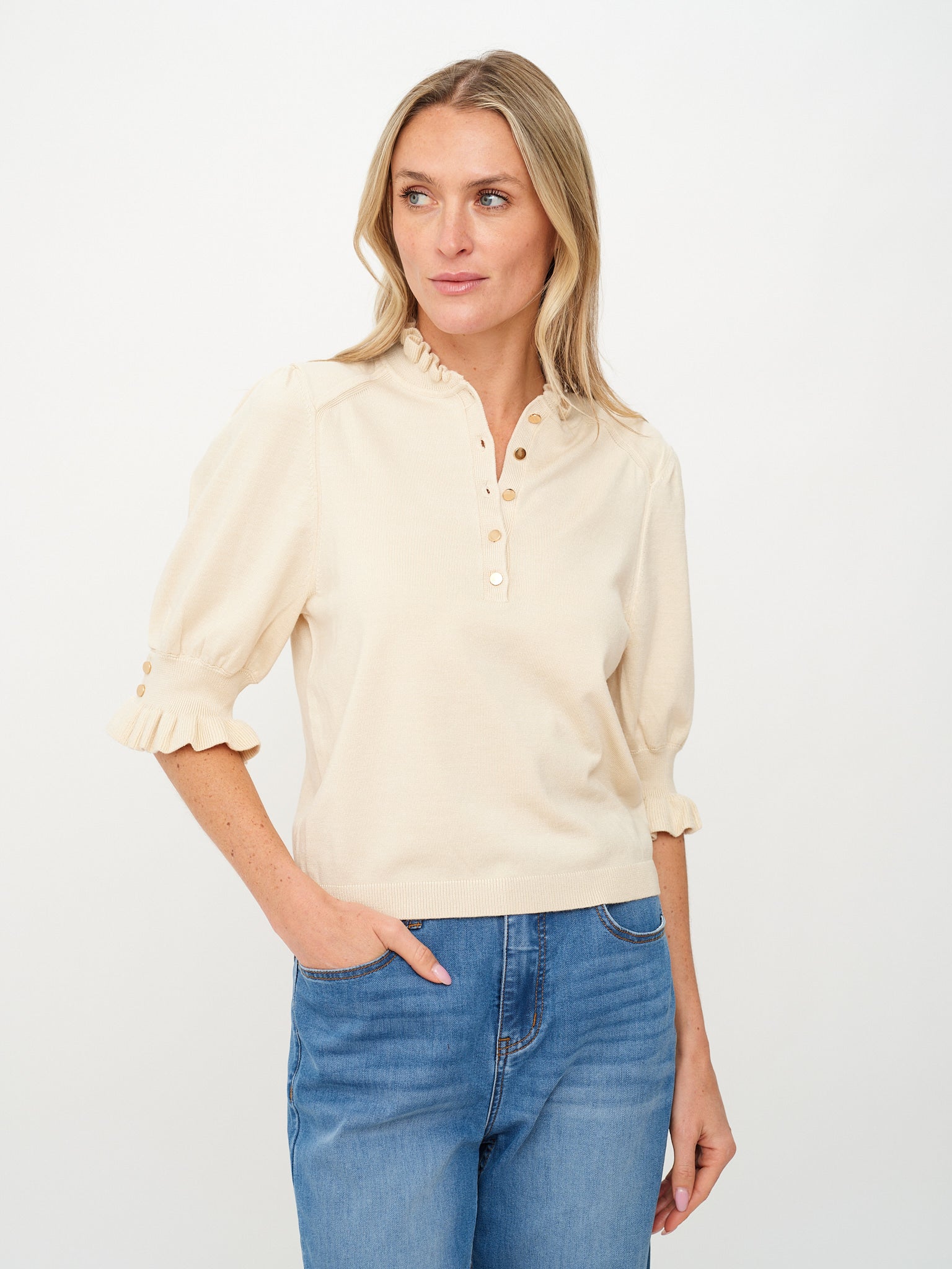 The Daphne Top brings a playful twist with its 3/4 flutter sleeves. Lightweight and breezy, this top adds a fun, flirty flair to your wardrobe, perfect for a casual outing or weekend adventure.