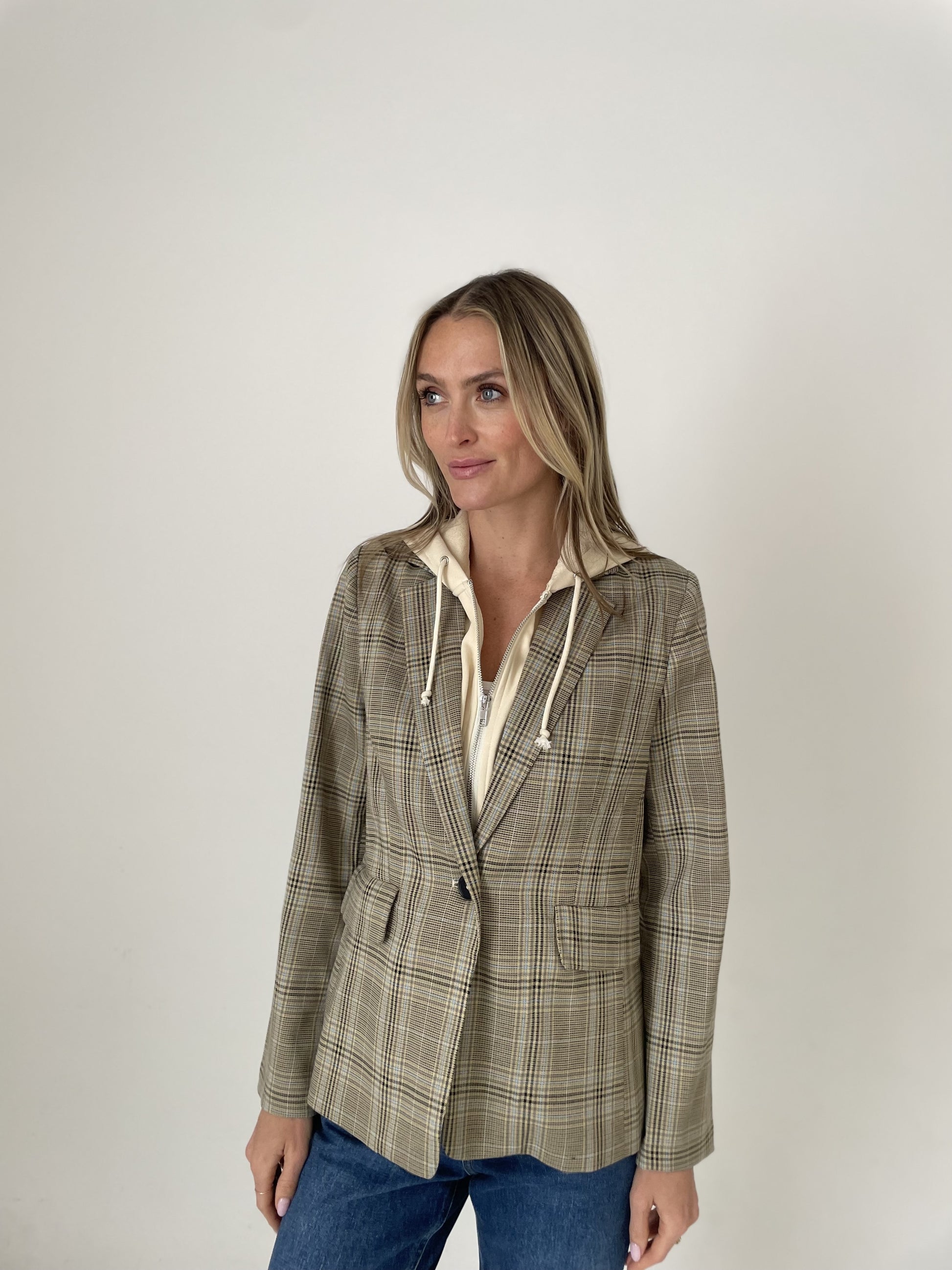 The Drew Blazer is the definition of polished ease. With its flattering fit, effortless drape, and wear-it-anywhere versatility, it’s the layer that instantly pulls your look together—whether you’re heading to the office, out to dinner, or anywhere in between. Designed with a removable hoodie insert, it gives you two looks in one—no wonder it’s a Six Fifty favorite you’ll keep reaching for season after season.