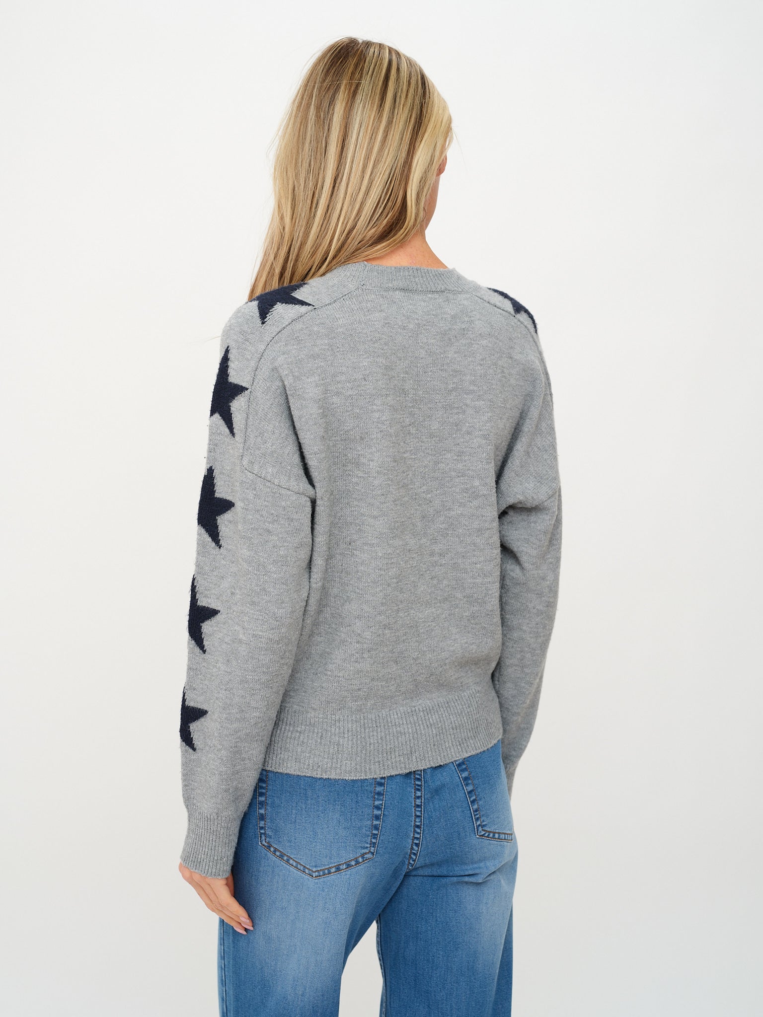 Stay comfy and spirited on game day with this heather grey sweater, featuring playful stars down the sleeves. Its soft, cozy fabric makes it perfect for cheering from the stands or relaxing with friends. Add a touch of fun to your game day wardrobe!