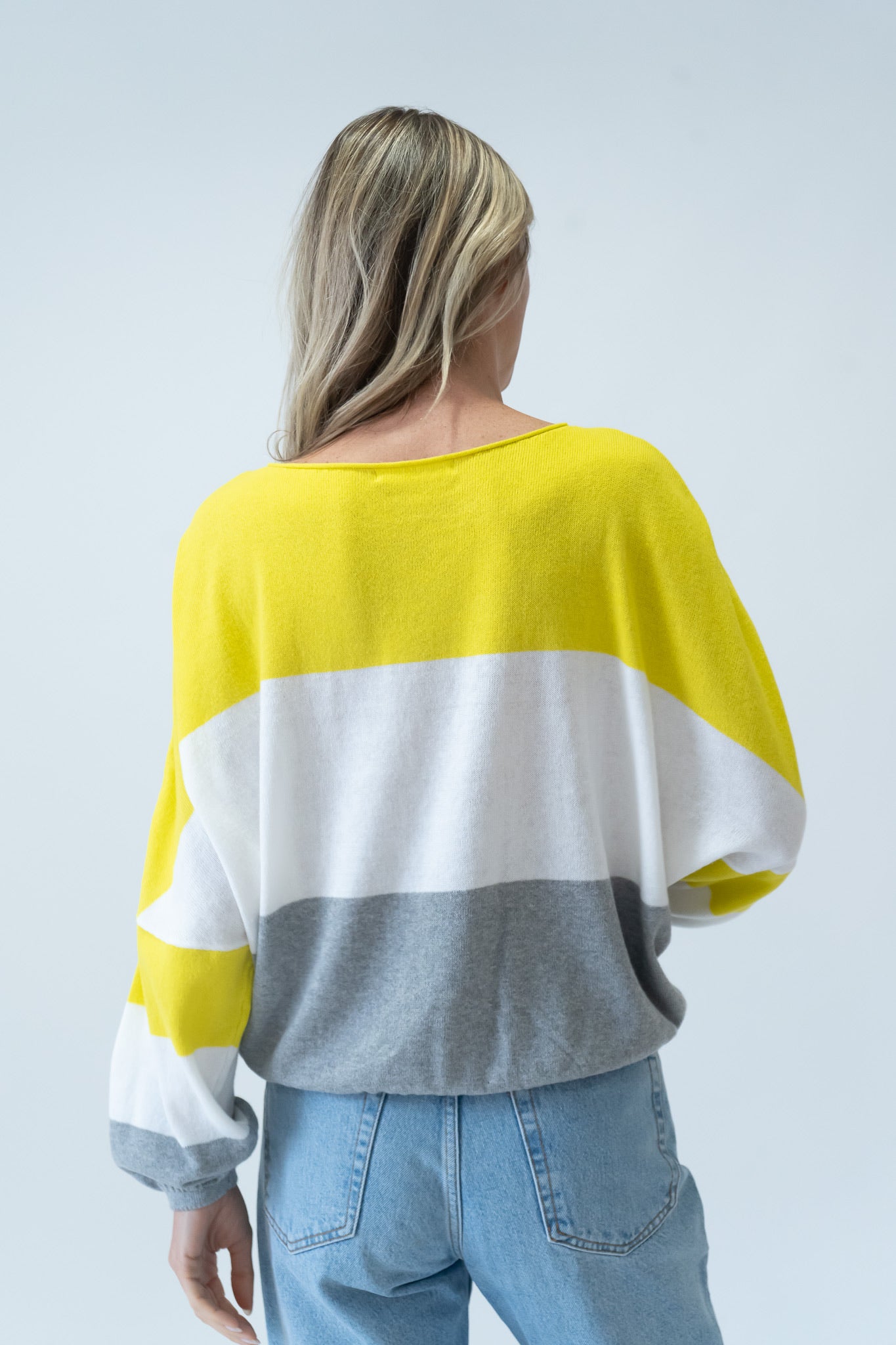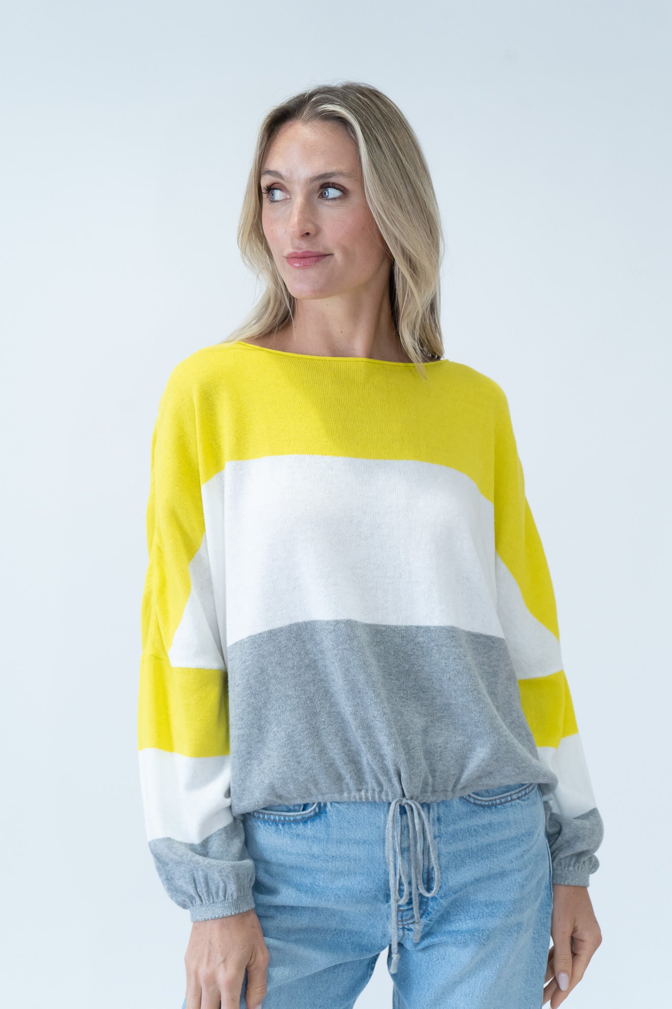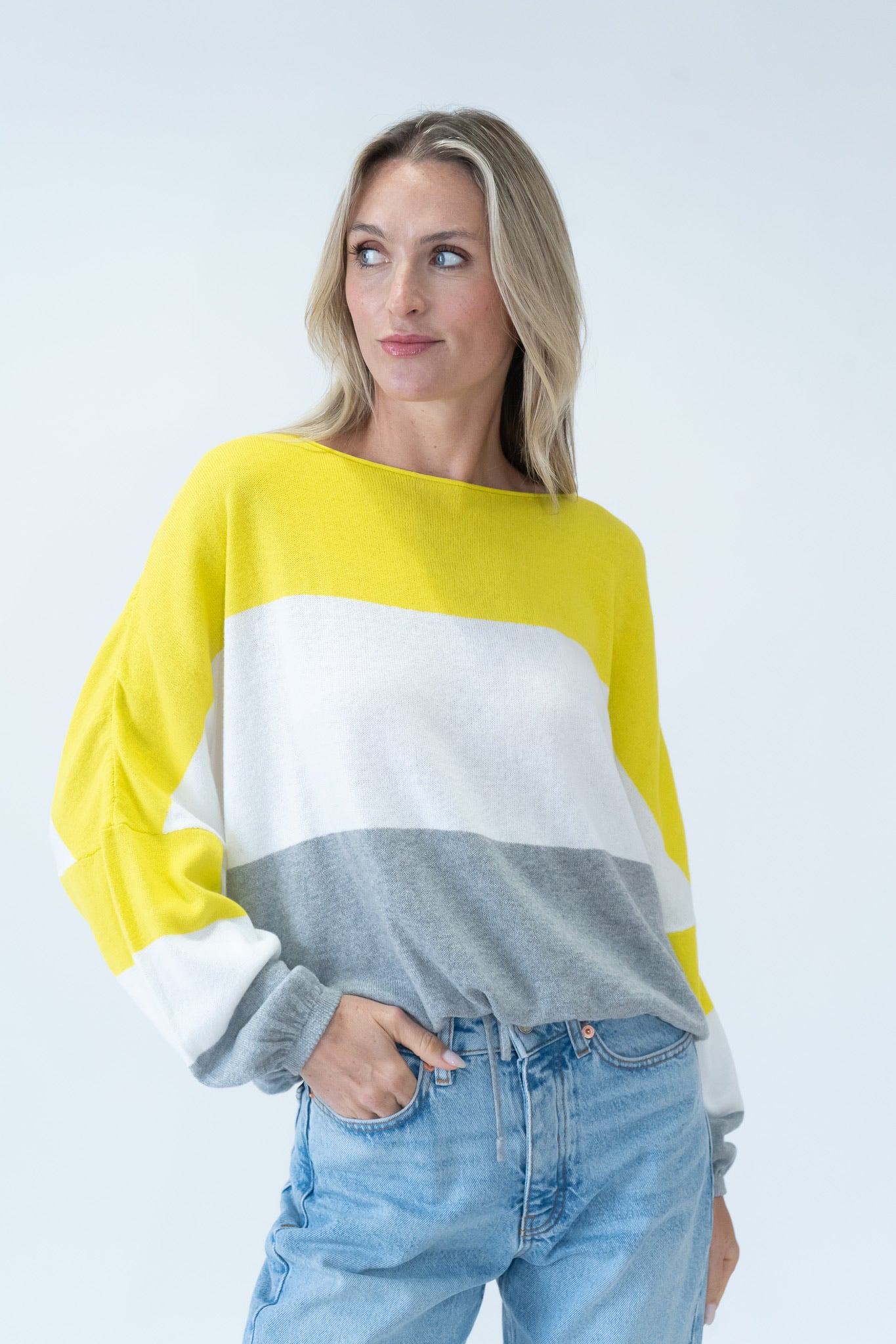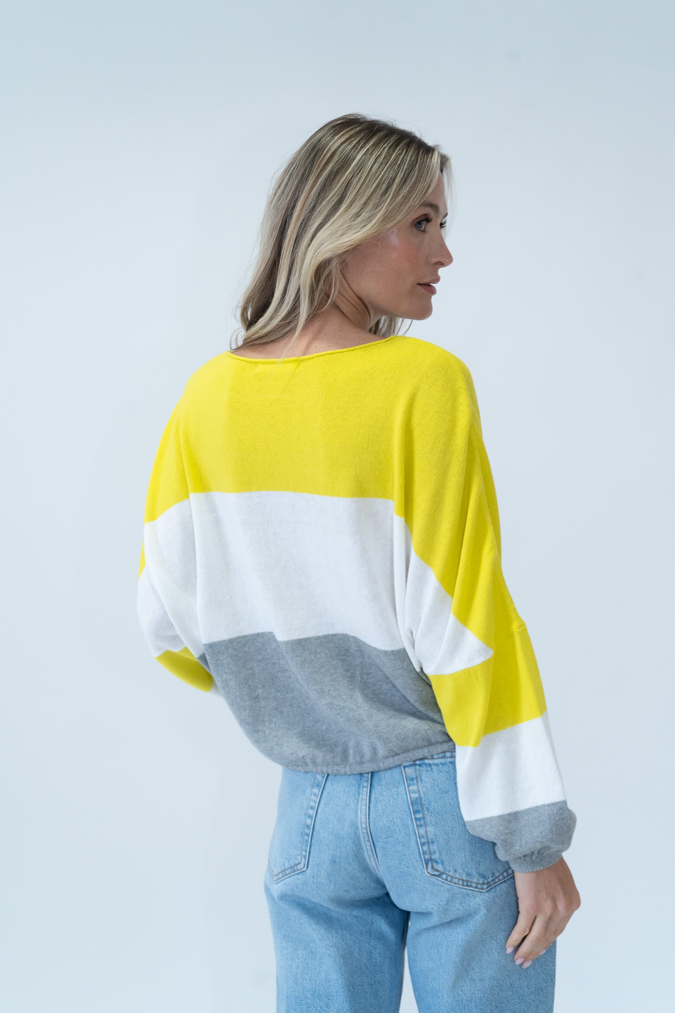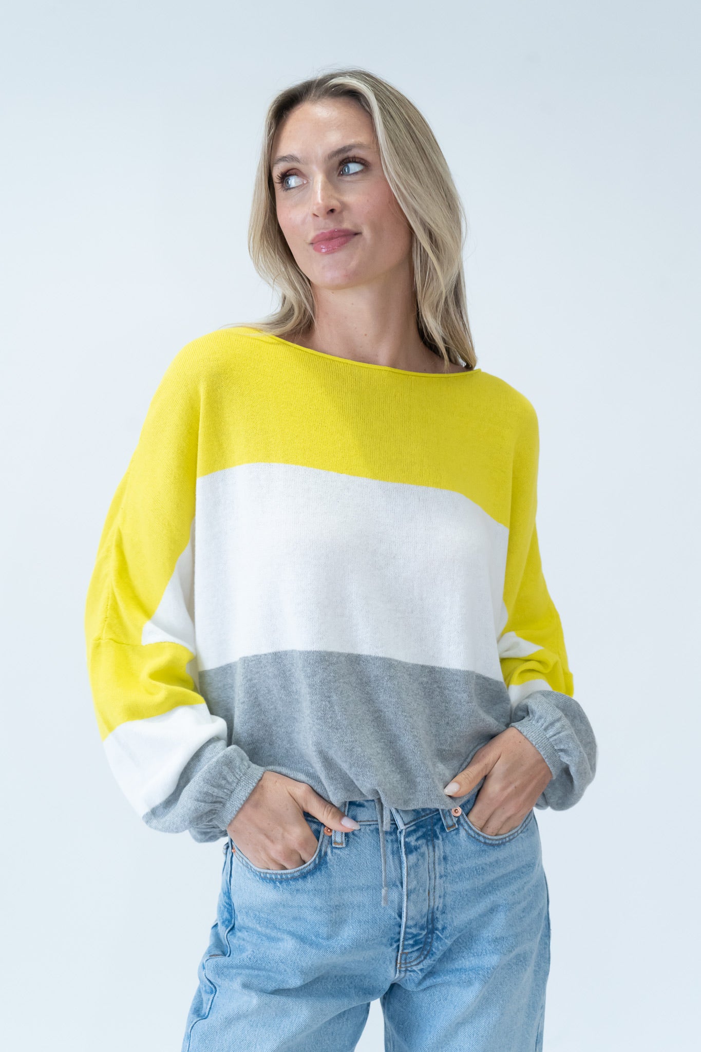 This Spring season, Georgia is a breath of fresh air. The lightweight 100% cotton sweater comes in three bright colors: aqua, pink, and yellow.