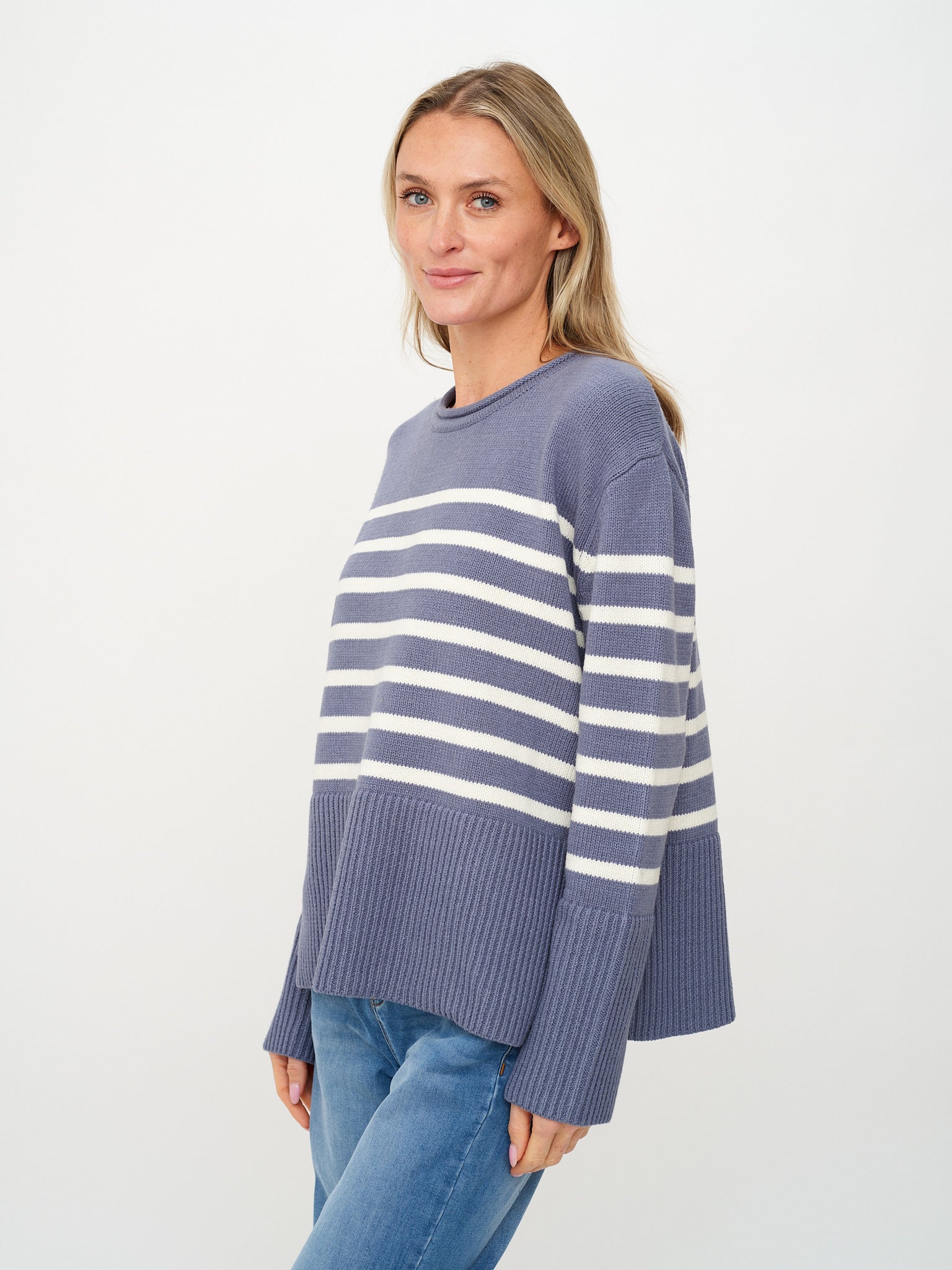 Experience the perfect blend of comfort and style with the Geralyn Sweater. Its soft fabric feels luxurious against your skin, while the classic striped crew neck design adds timeless appeal. The unique V-cut at the sides gives a flattering silhouette that effortlessly combines cozy warmth and chic detail.