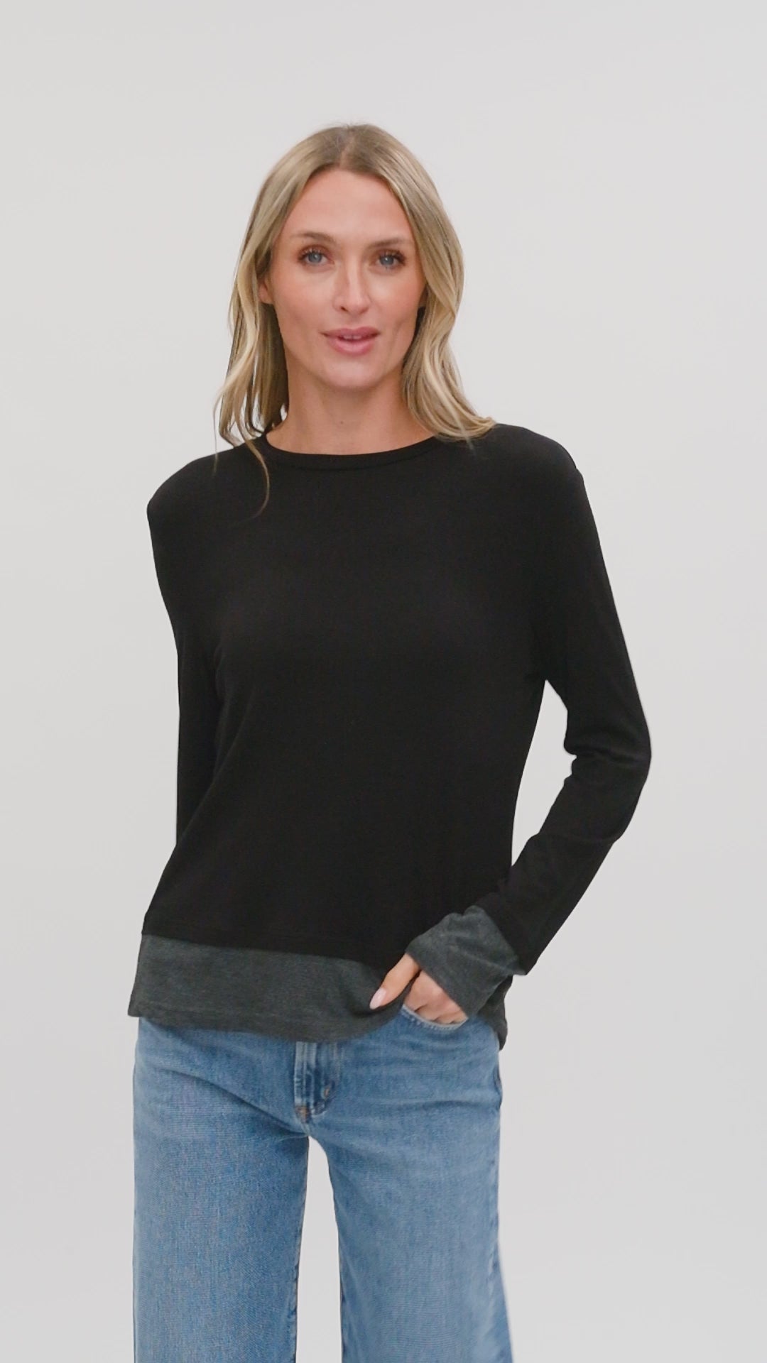 Are you looking for a layering piece that doesn't actually require you to layer? You'll love the Izzy top. Stylish and comfortable, this layered tee adds a sophisticated twist to your top.