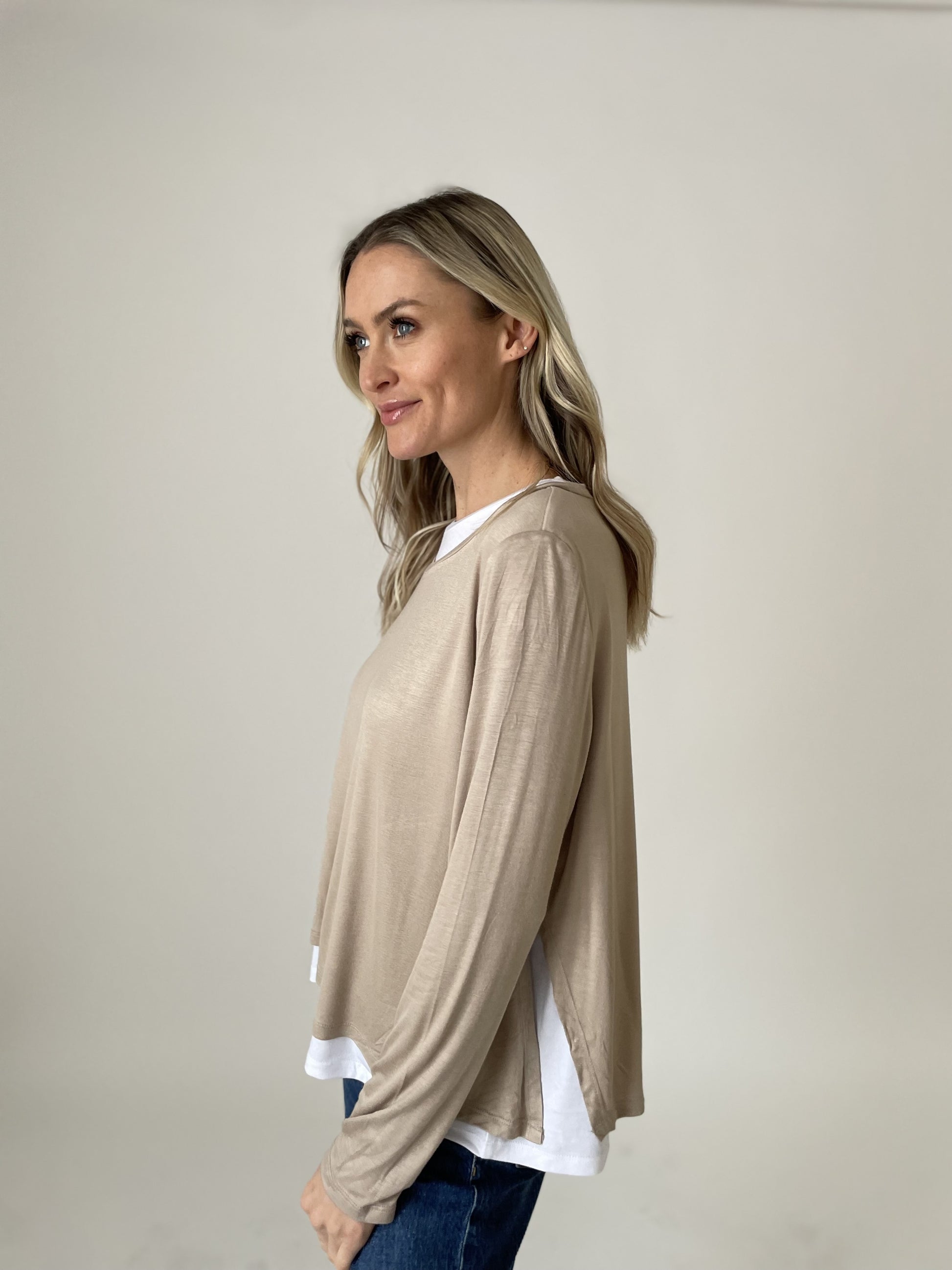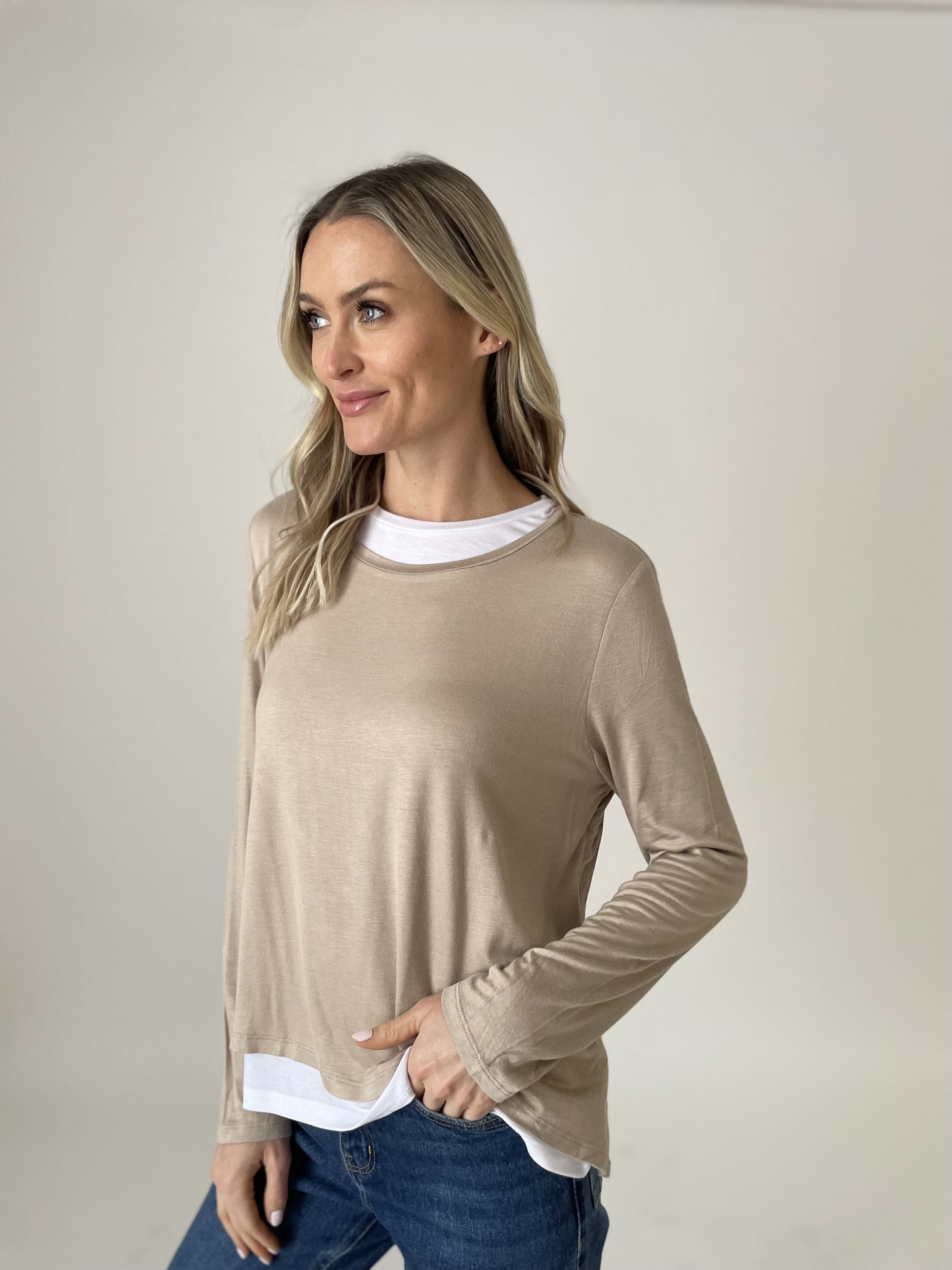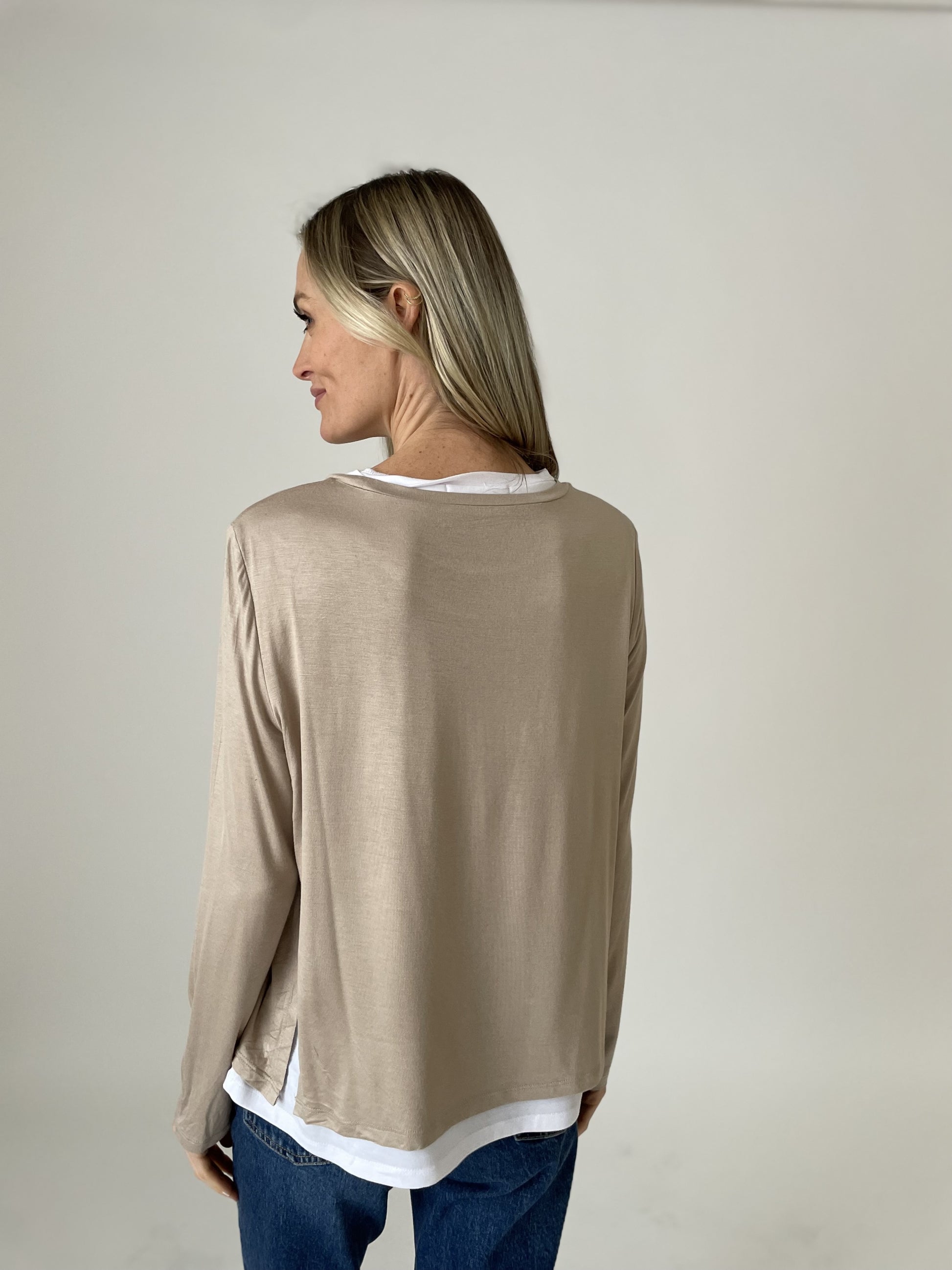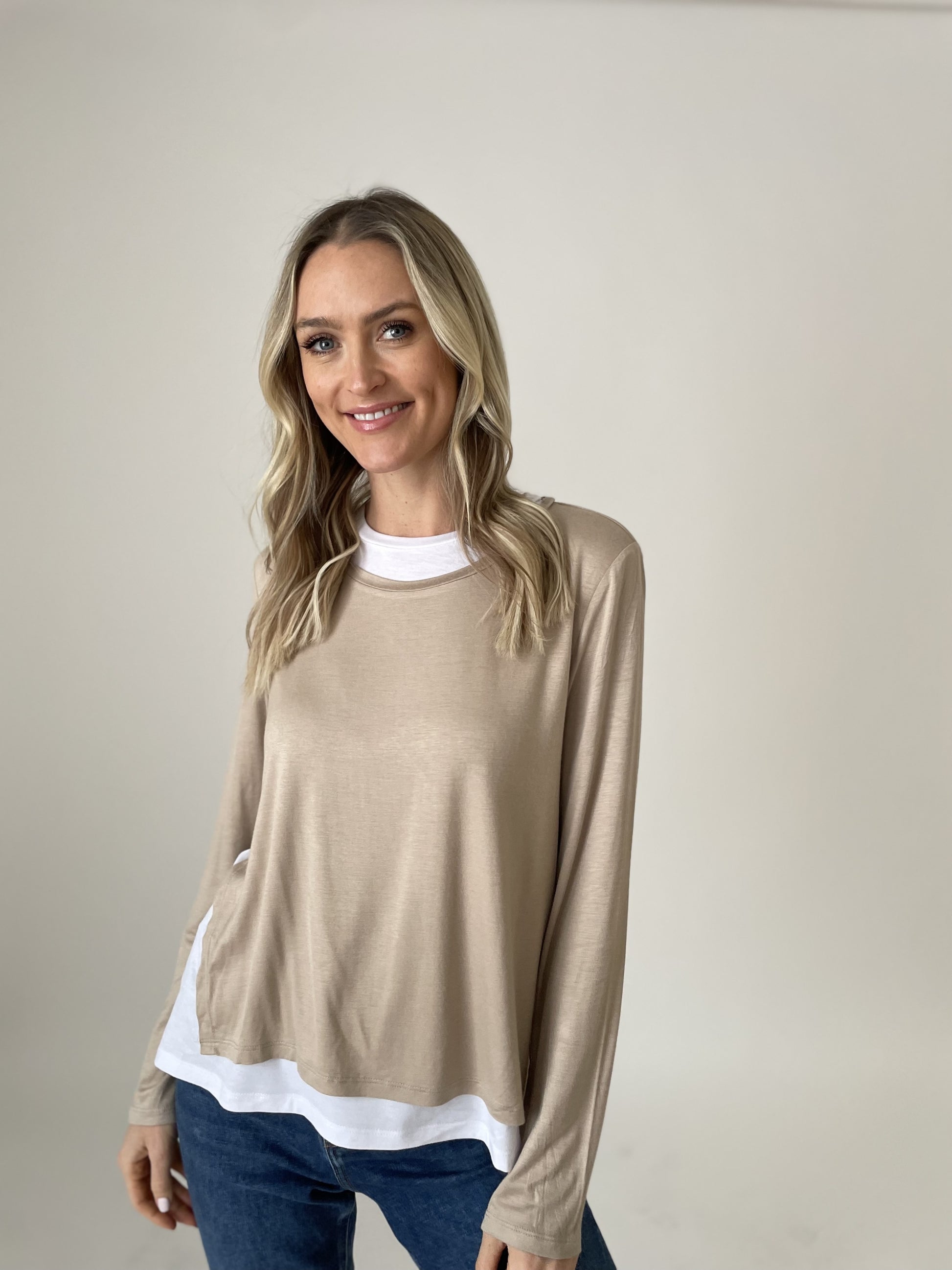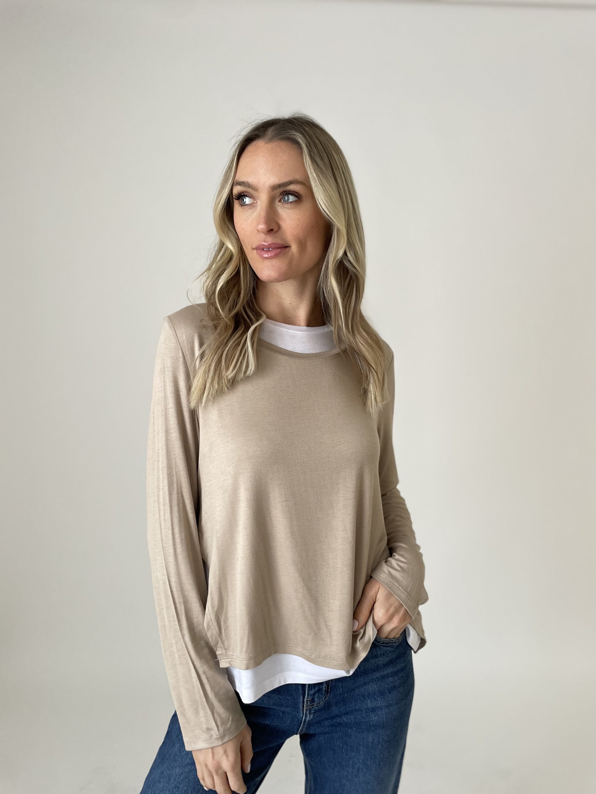 Are you looking for a layering piece that doesn't actually require you to layer? You'll love the Izzy top. Stylish and comfortable, this layered tee adds a sophisticated twist to your top.