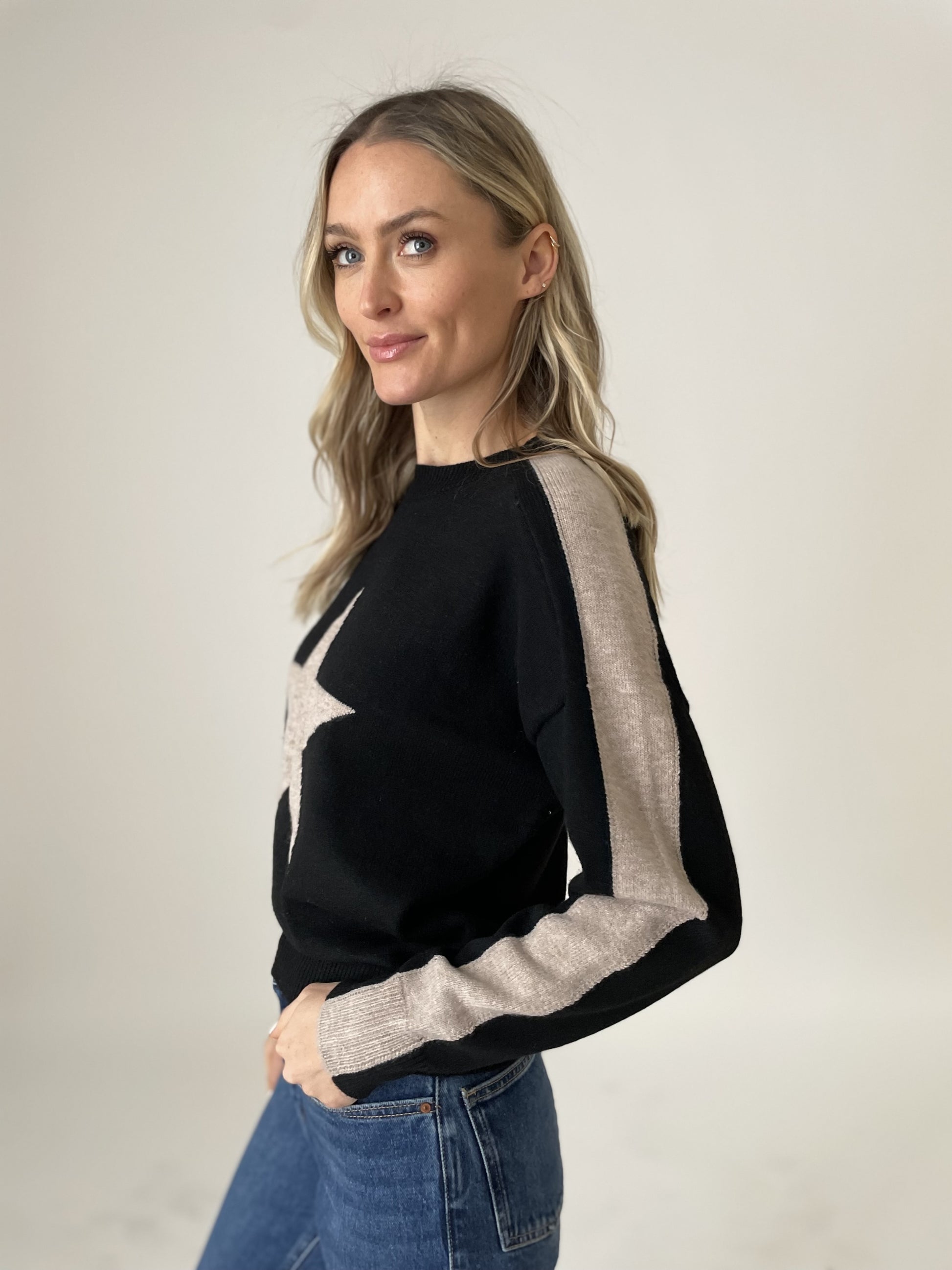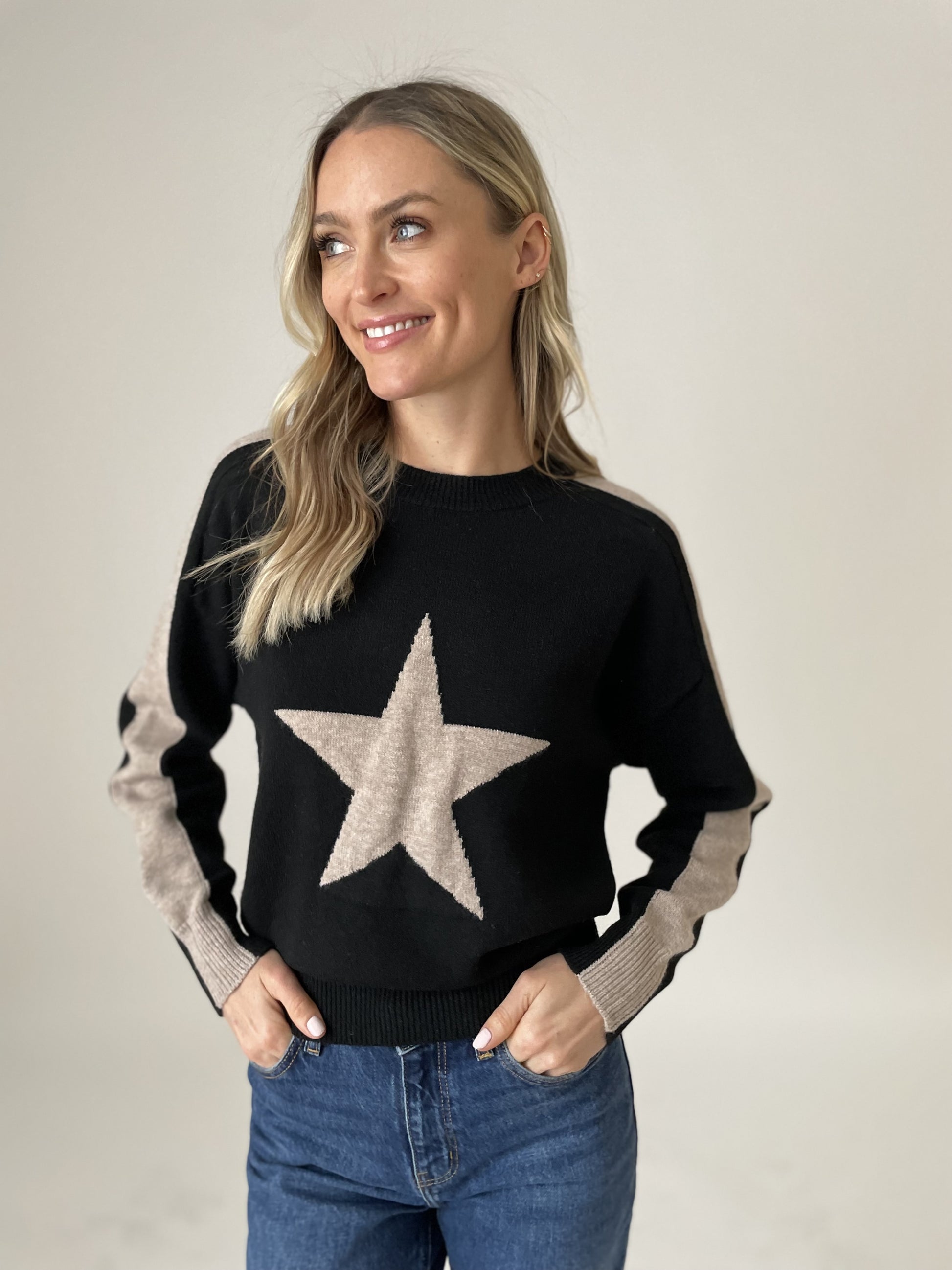 Not your average star sweater, we spiced it up this year with the Morgan. This crew neck is in the same fabric as our best selling smiley hoodie. Featuring a stripe on the sleeve and a graphic star in the middle.