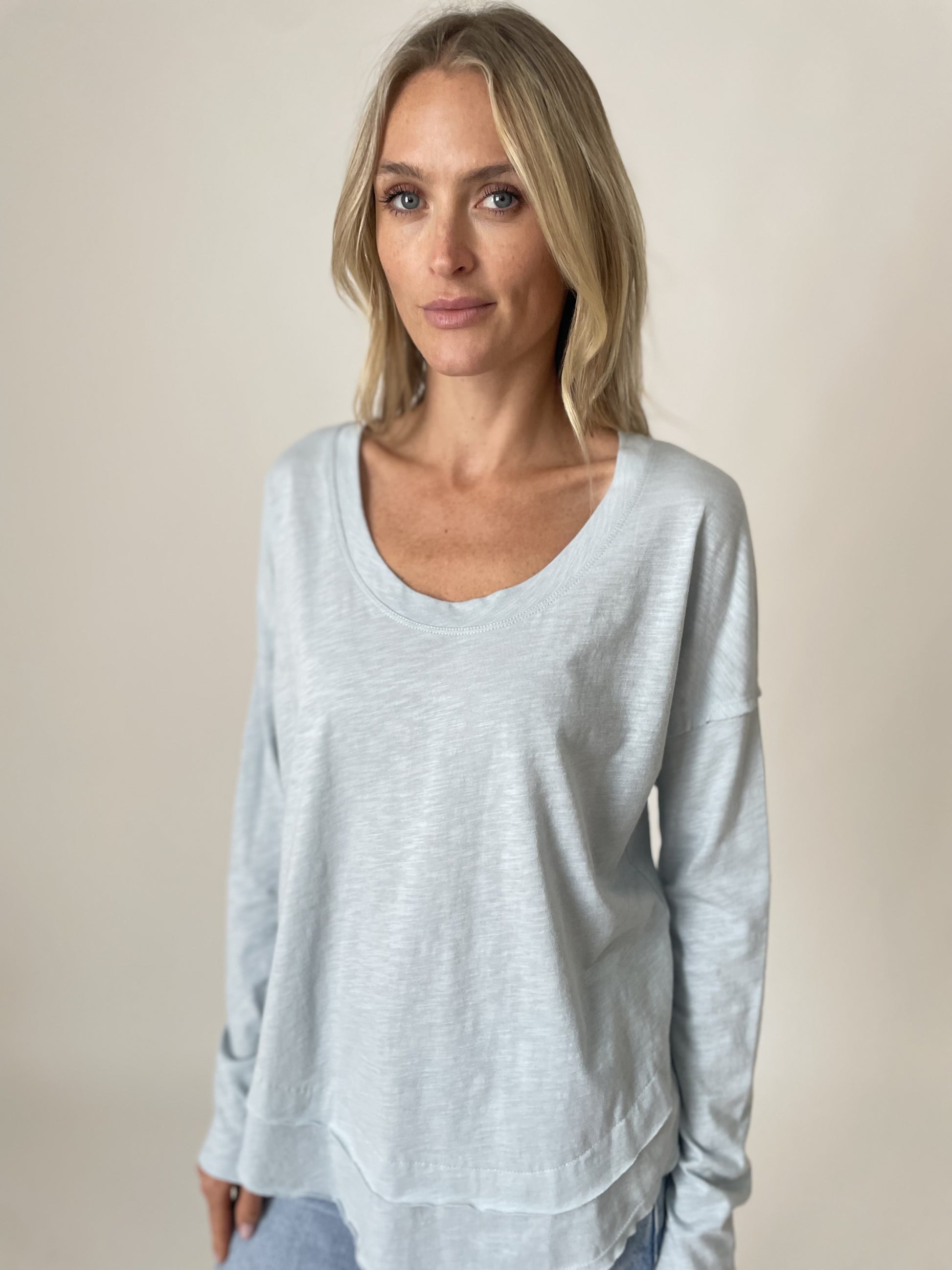 Simple, chic and comfortable is what you’ll find with the Reagan tee. Featuring a double layered style, this tee can be found in four colors: black, navy, white and aquamarine. The Raegan can be paired with sneakers and denim of choice.