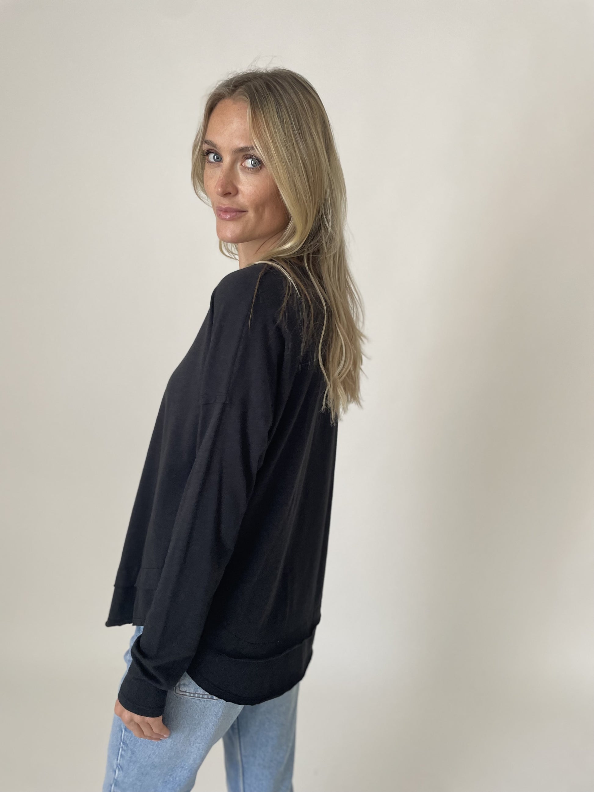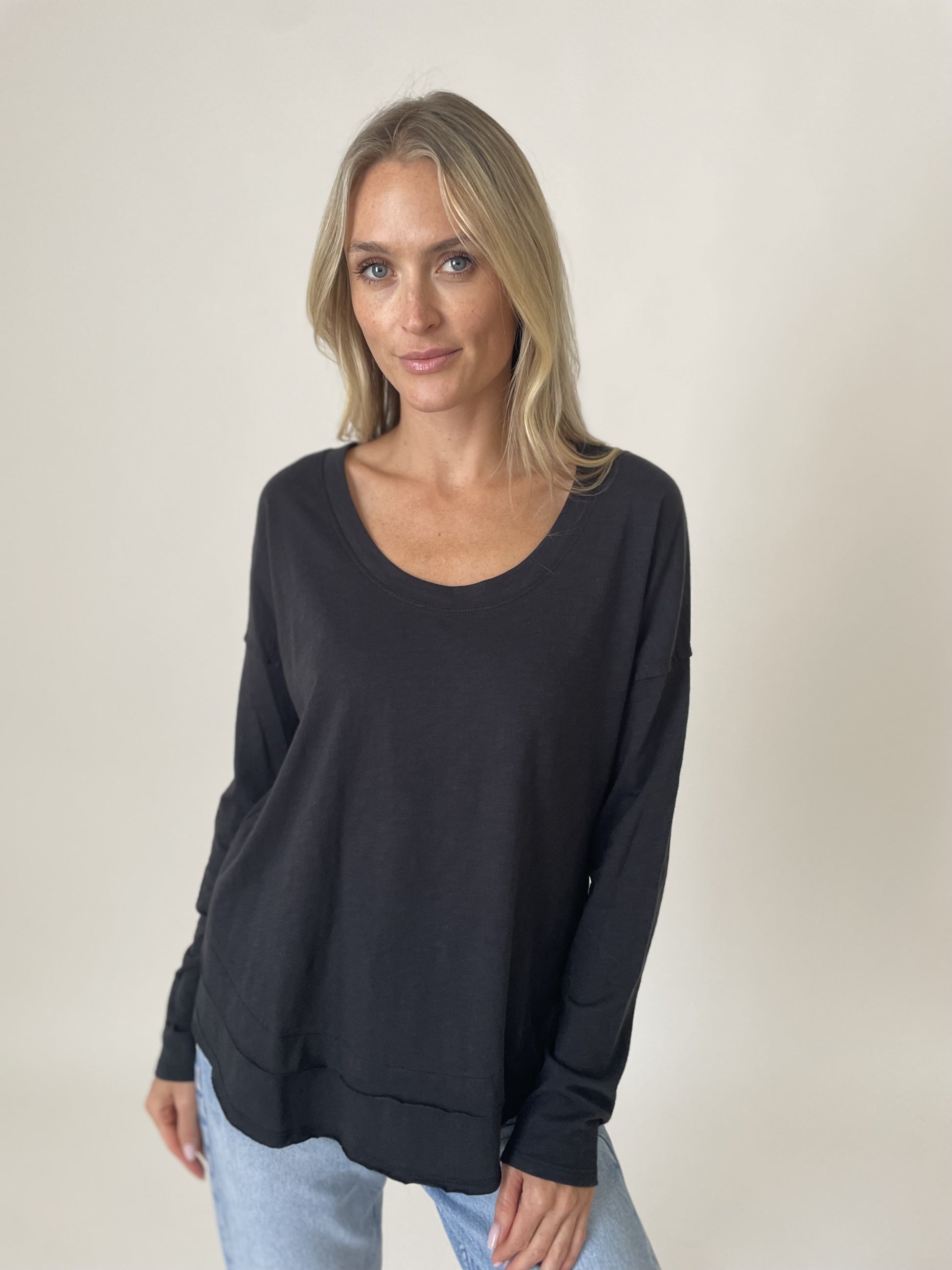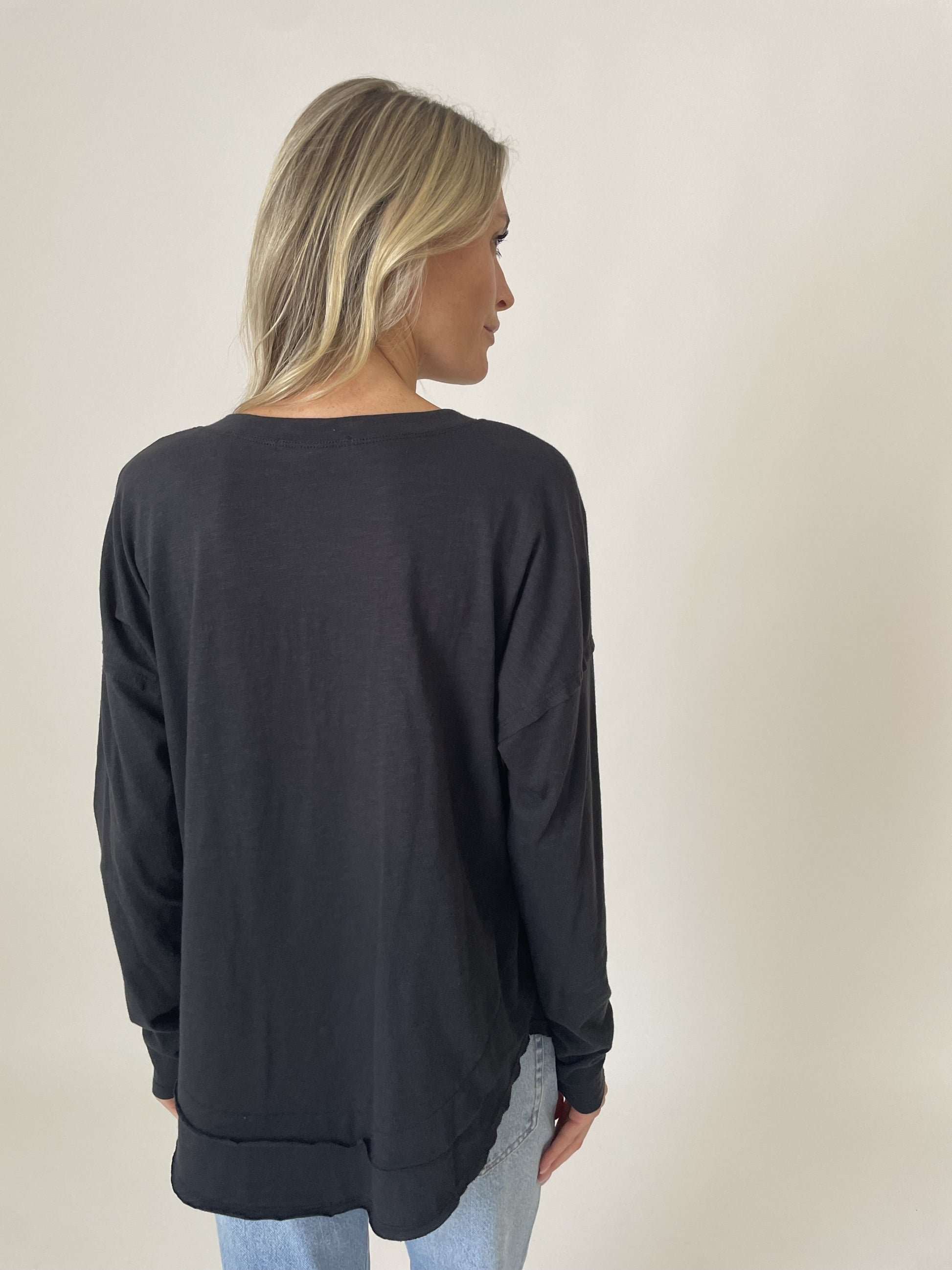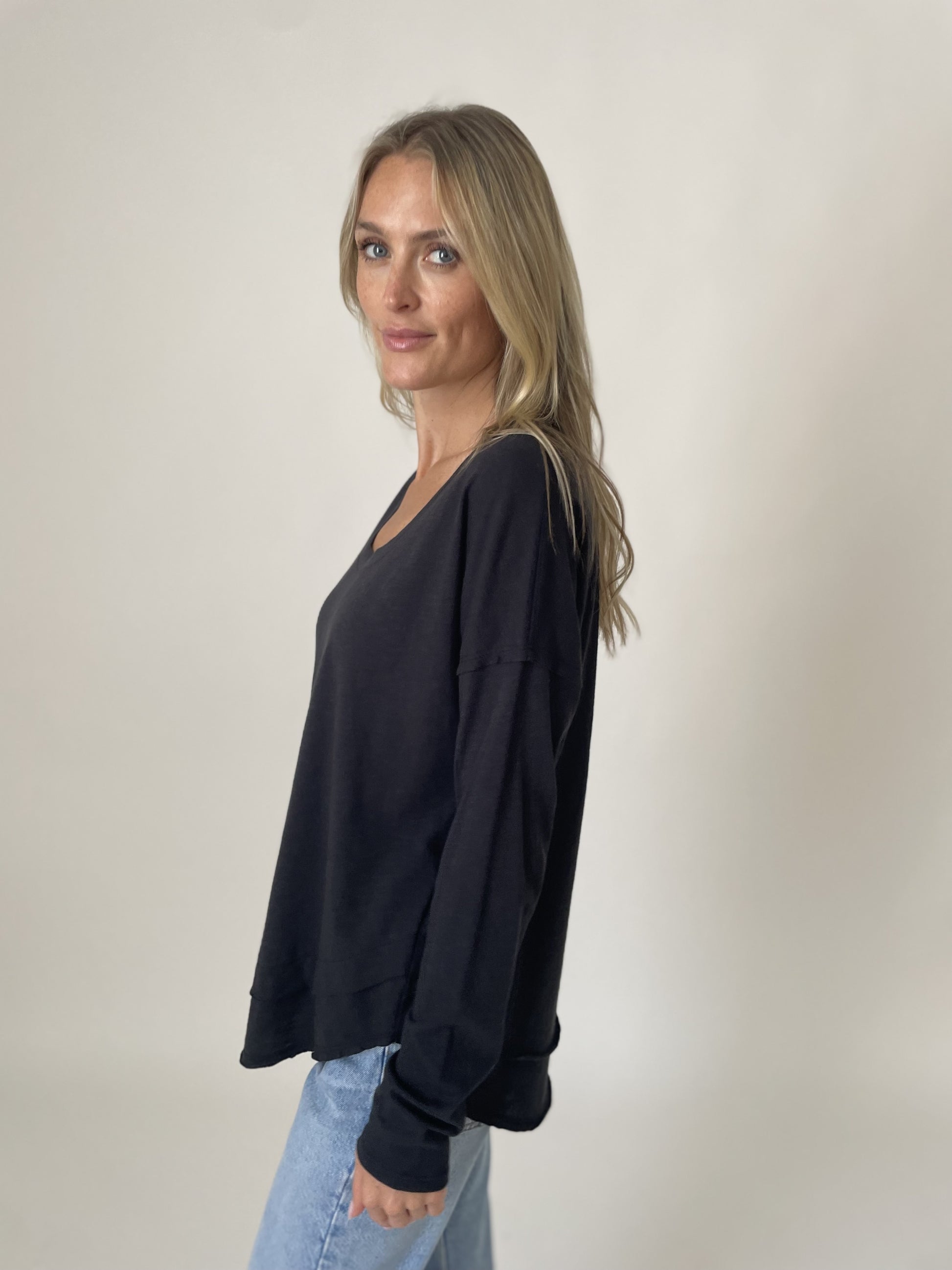 Simple, chic and comfortable is what you’ll find with the Reagan tee. Featuring a double layered style, this tee can be found in four colors: black, navy, white and aquamarine. The Raegan can be paired with sneakers and denim of choice.
