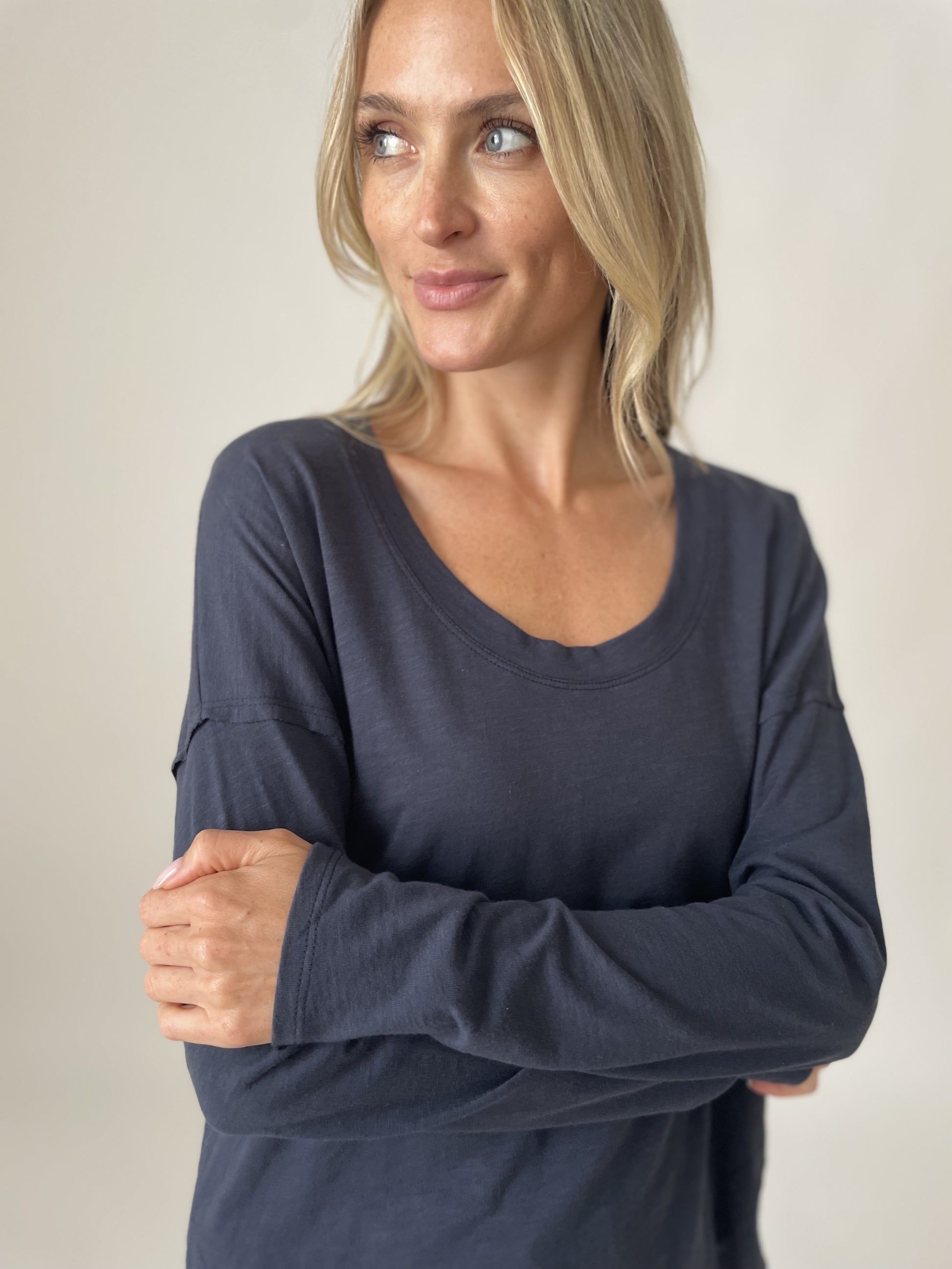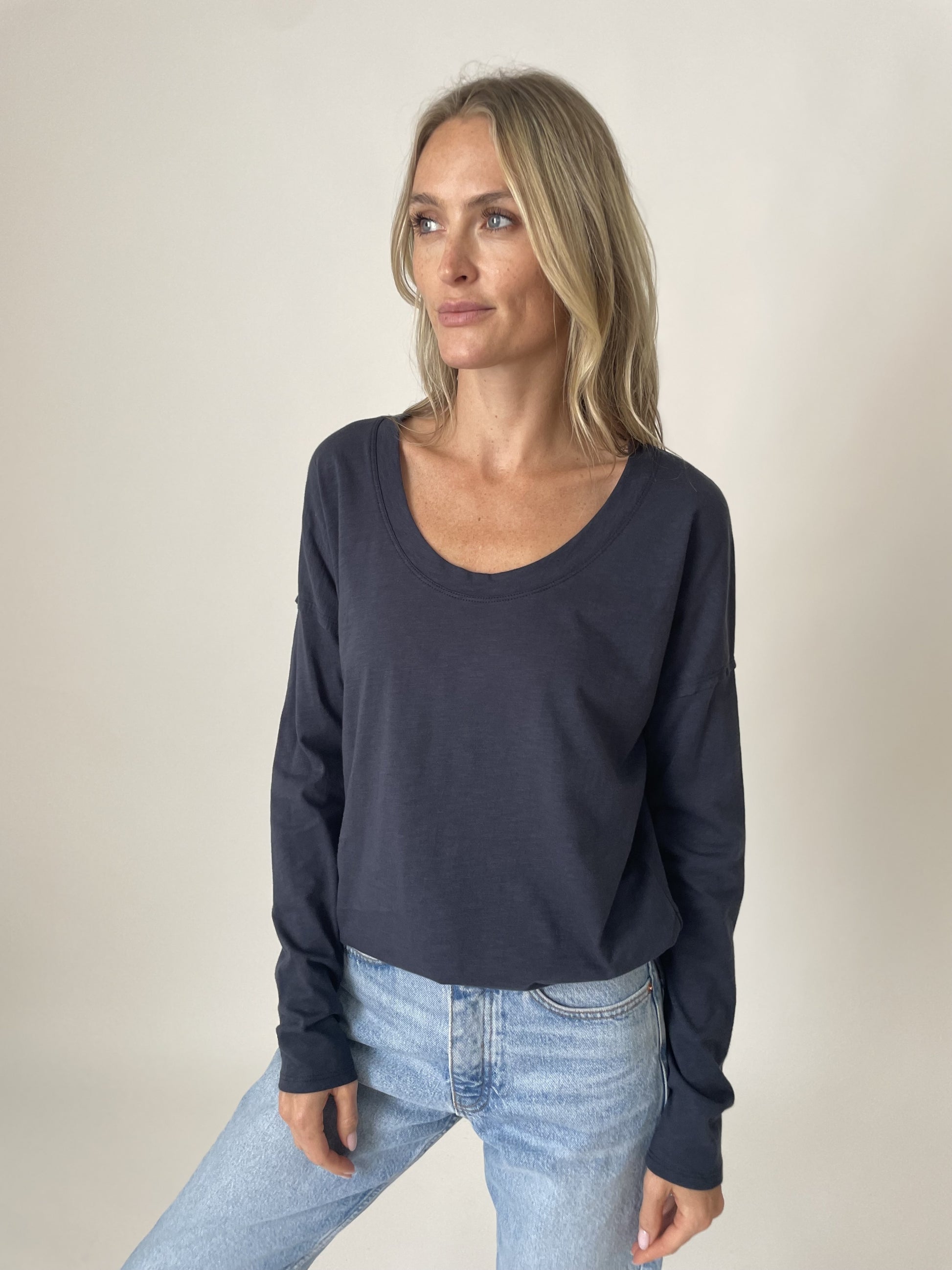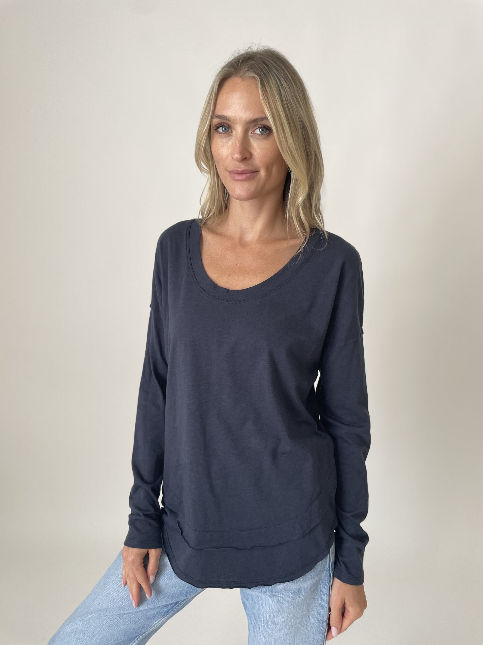 Simple, chic and comfortable is what you’ll find with the Reagan tee. Featuring a double layered style, this tee can be found in four colors: black, navy, white and aquamarine. The Raegan can be paired with sneakers and denim of choice.