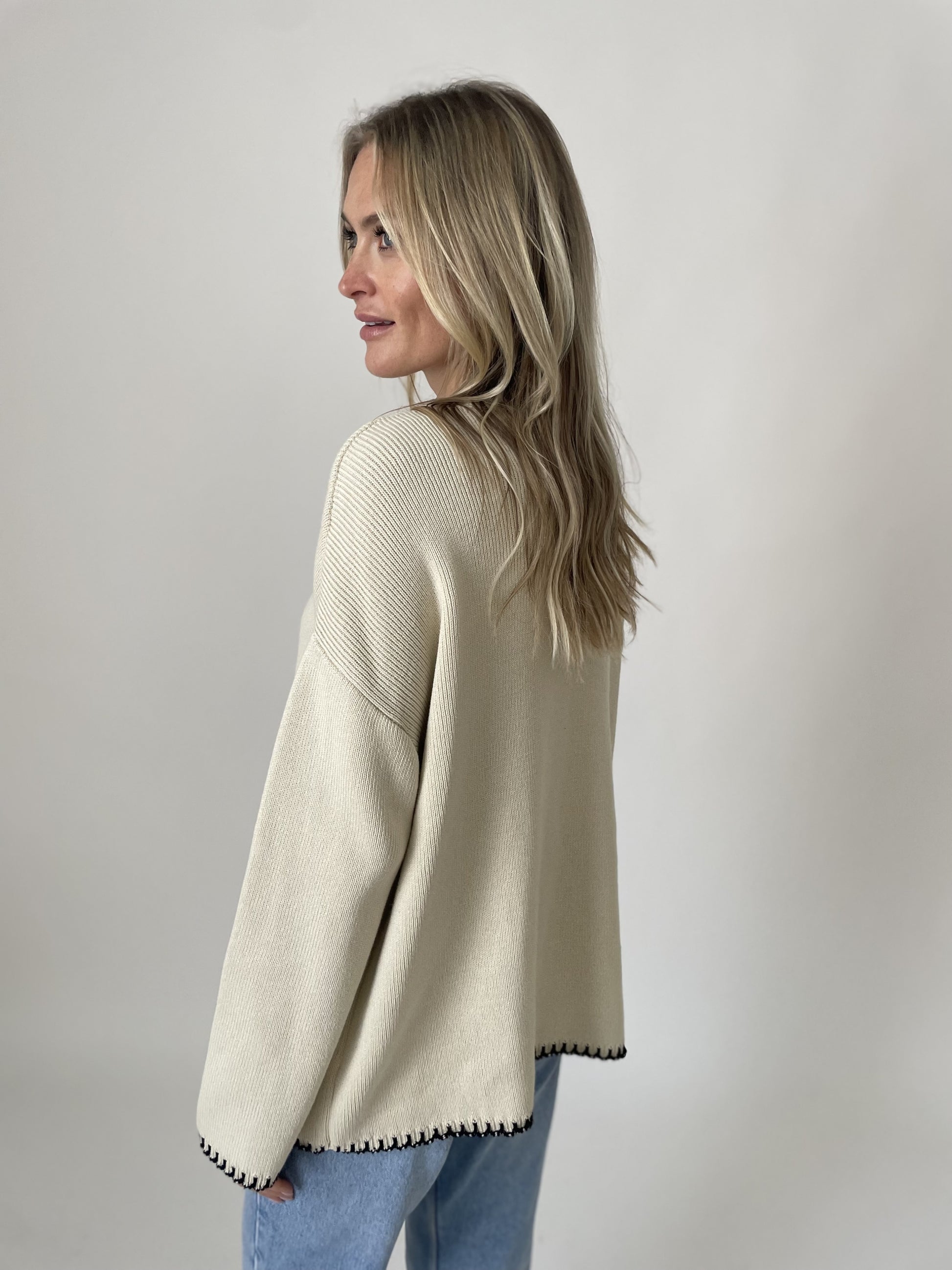 Oversized and ribbed, the Setauket Cardigan is here! The Setauket features exposed stitching along the seams and can be found in two colors: navy and bone. Pair this cardigan with your favorite denim to complete your look!