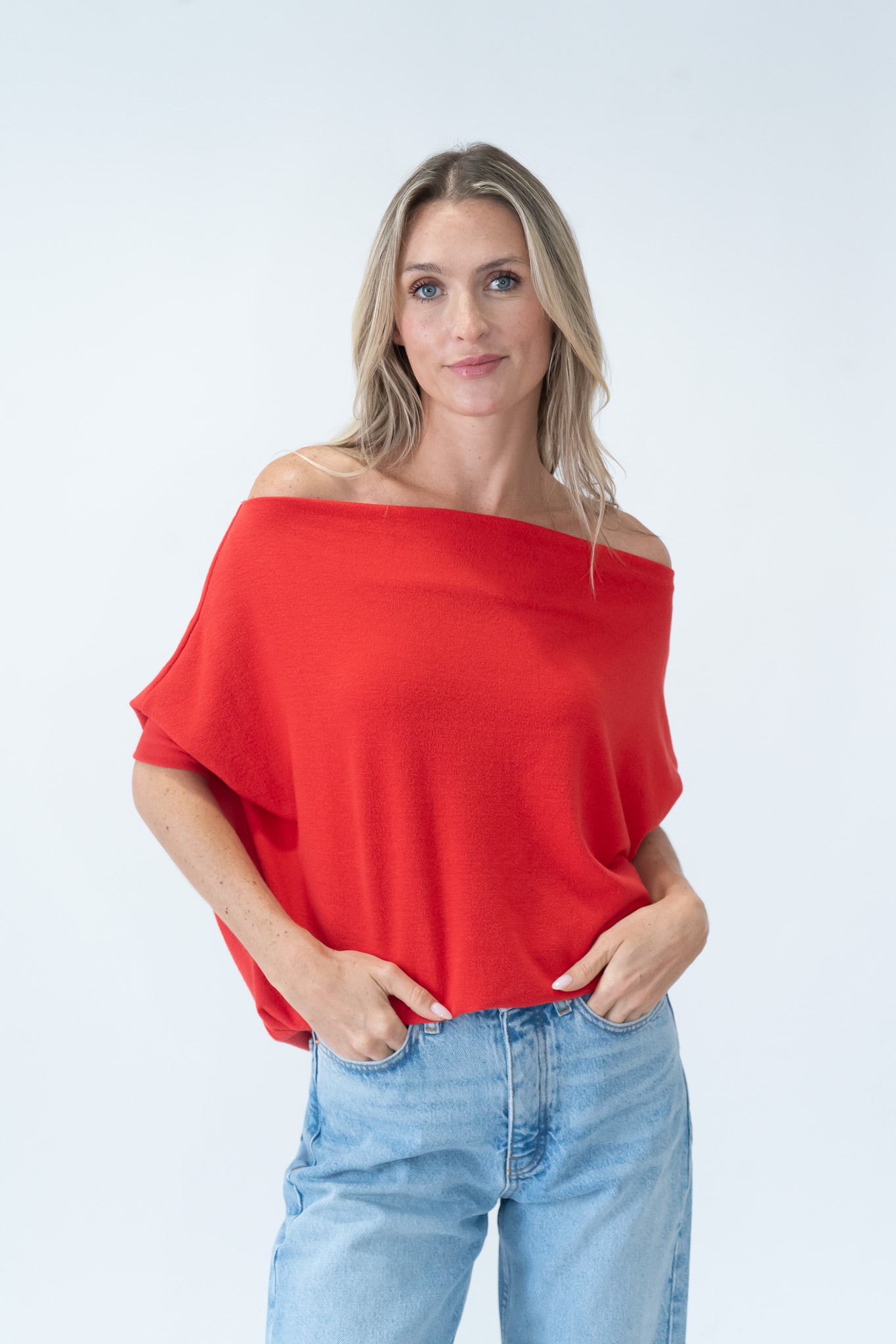 Meet the short sleeve version of our best-selling Anywhere Top—designed for effortless style no matter the season. Lightweight, flattering, and easy to wear, with a collar you can style three ways—cowl, off one shoulder, or off both—this is the top you’ll reach for again and again.