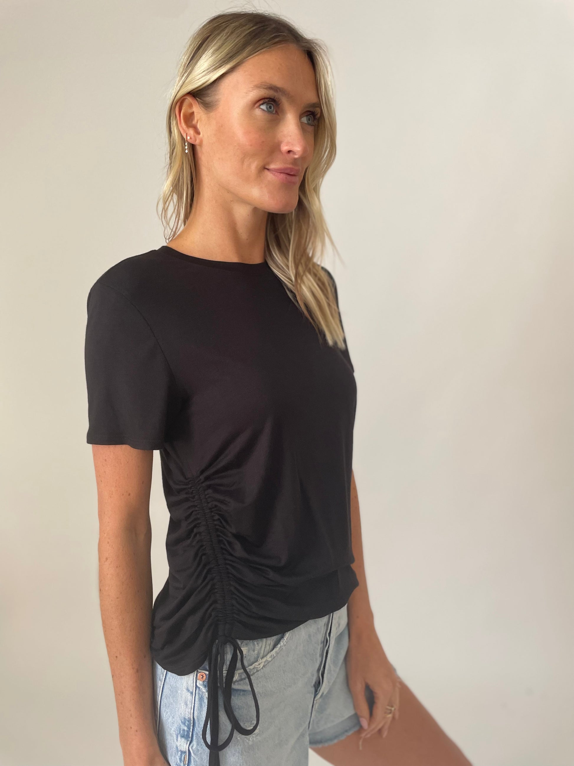 Embrace the spring season with the Suri Tee! With an adjustable ruched detail on the side, a crew neckline, and three colors. This shirt is the perfect combination of comfort and style.