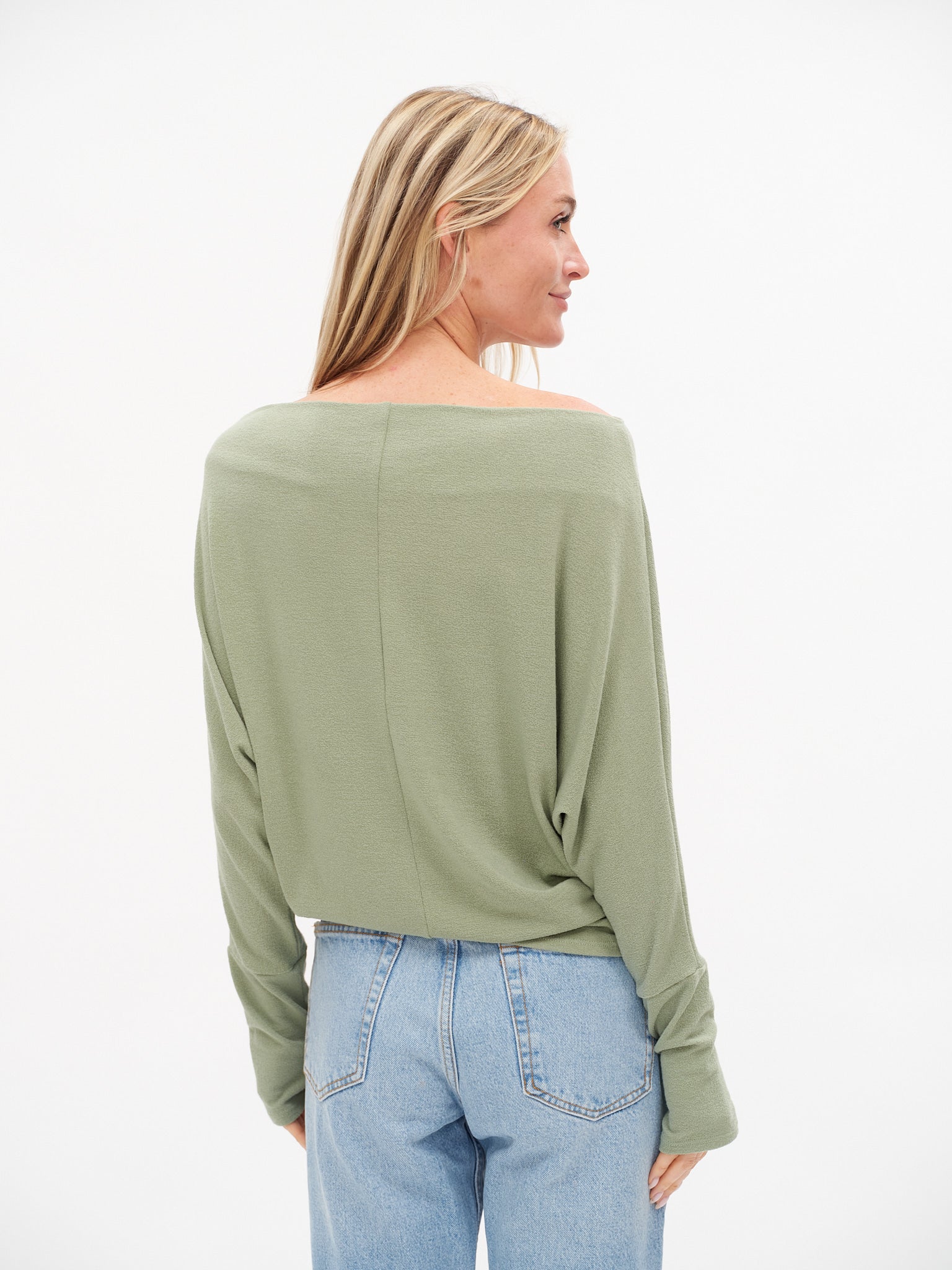 This go-to piece can be styled so many ways you'll be happy to have it in your closet. In our signature crepe hacci fabric, style it on or off the shoulder, or off one shoulder. Tuck it into denim or a tailored pant for a chic look.