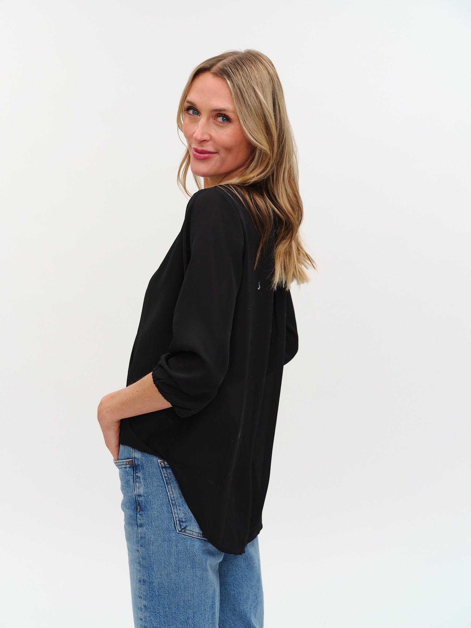 Elevate your wardrobe with the Vanessa Top, featuring a flattering cross-front design and feminine V-neckline. Its lightweight, flowy fabric and comfortable 3/4 sleeves make it perfect for all-day wear, effortlessly combining style and ease. This versatile piece transitions seamlessly from work to weekend with graceful movement and elegance.