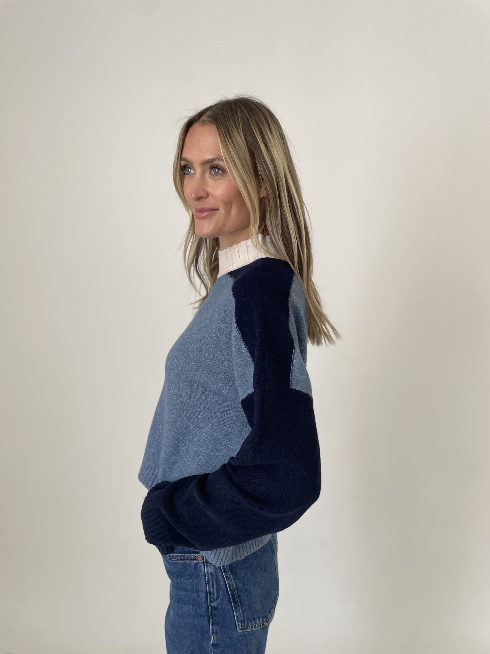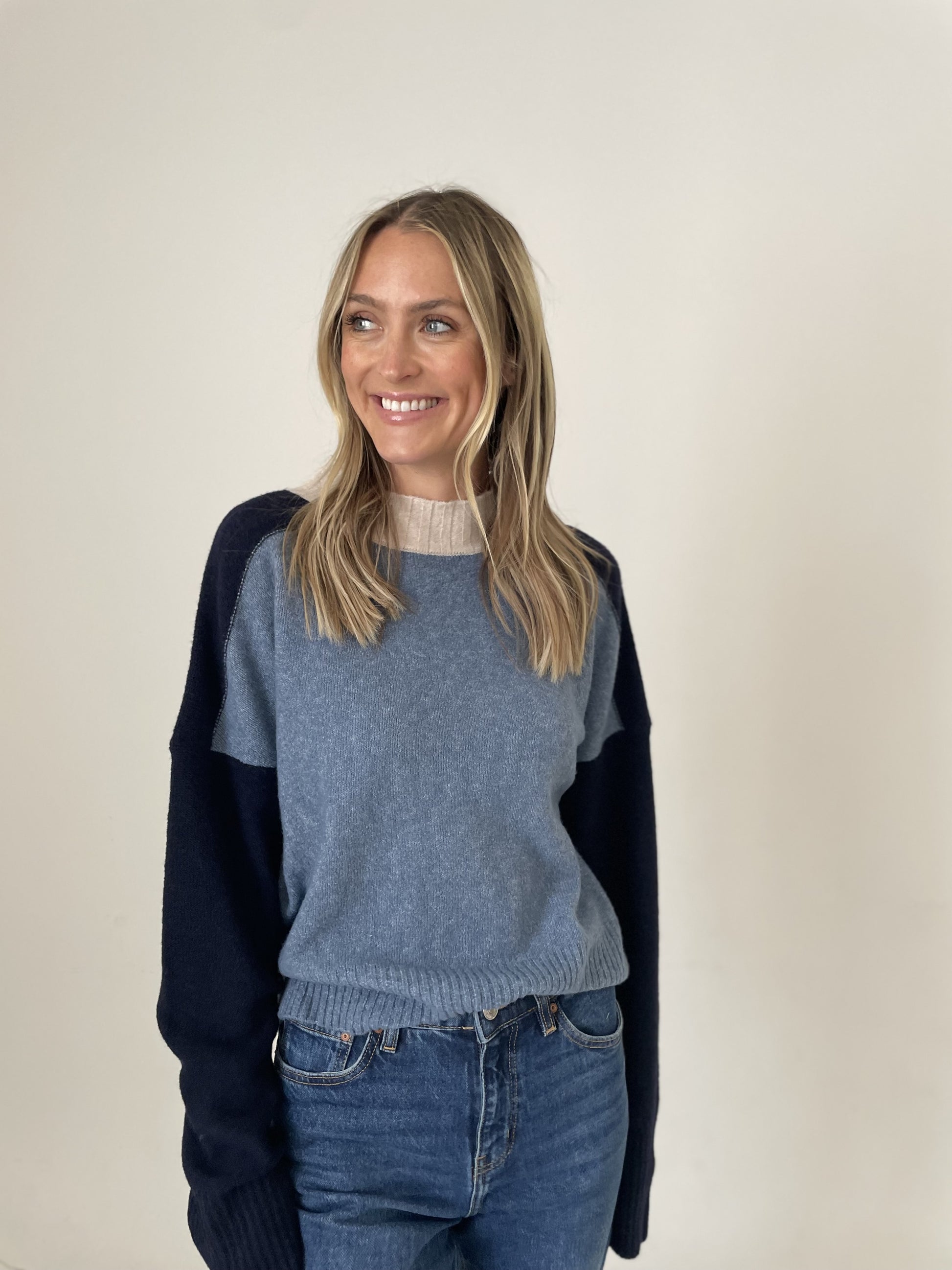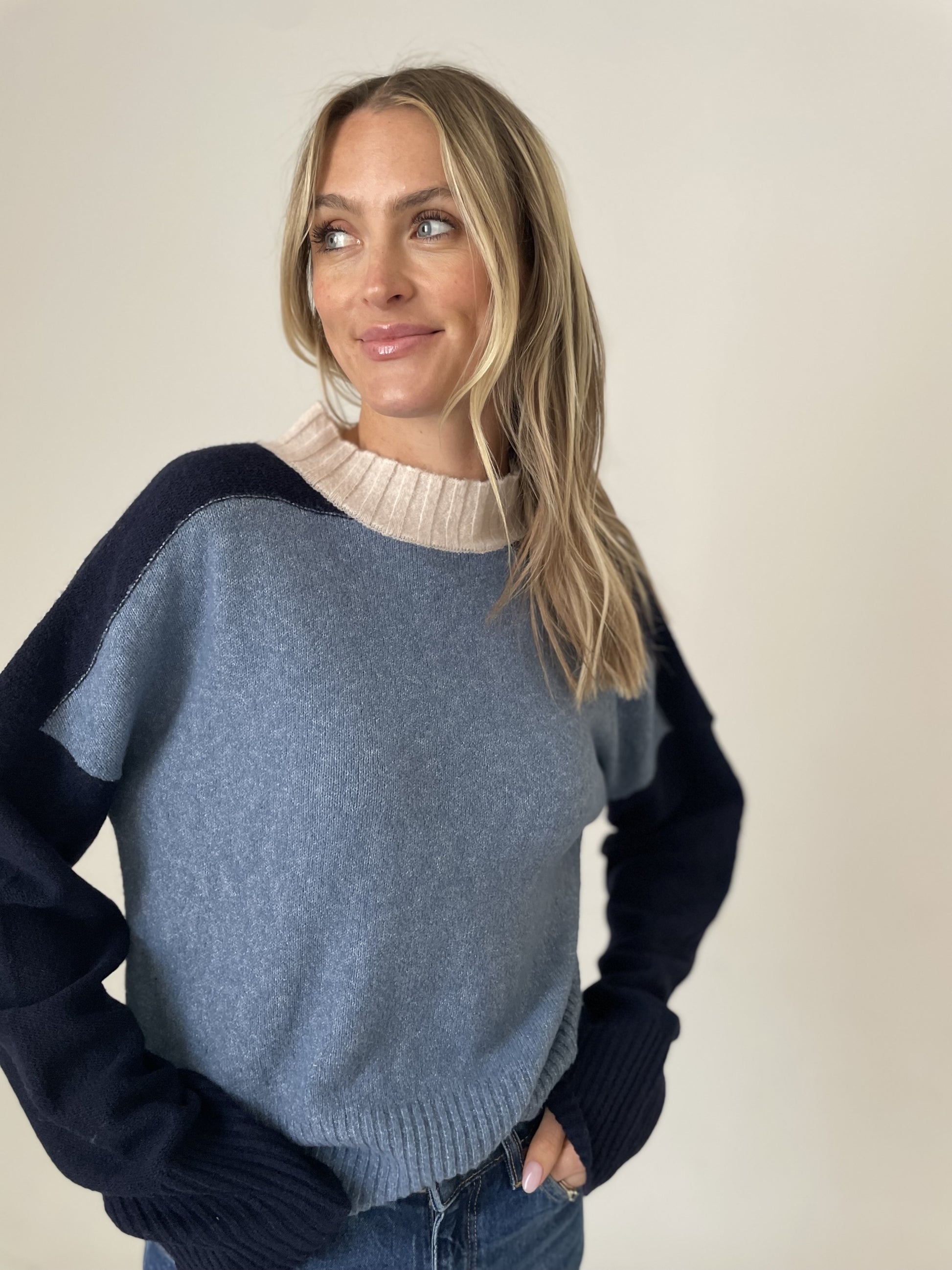 Six Fifty has another cozy sweater to add to your wardrobe. Featuring a funnel neck and color blocking, this sweater is a must-have! Find the Victoria in two colors - denim or heather grey.