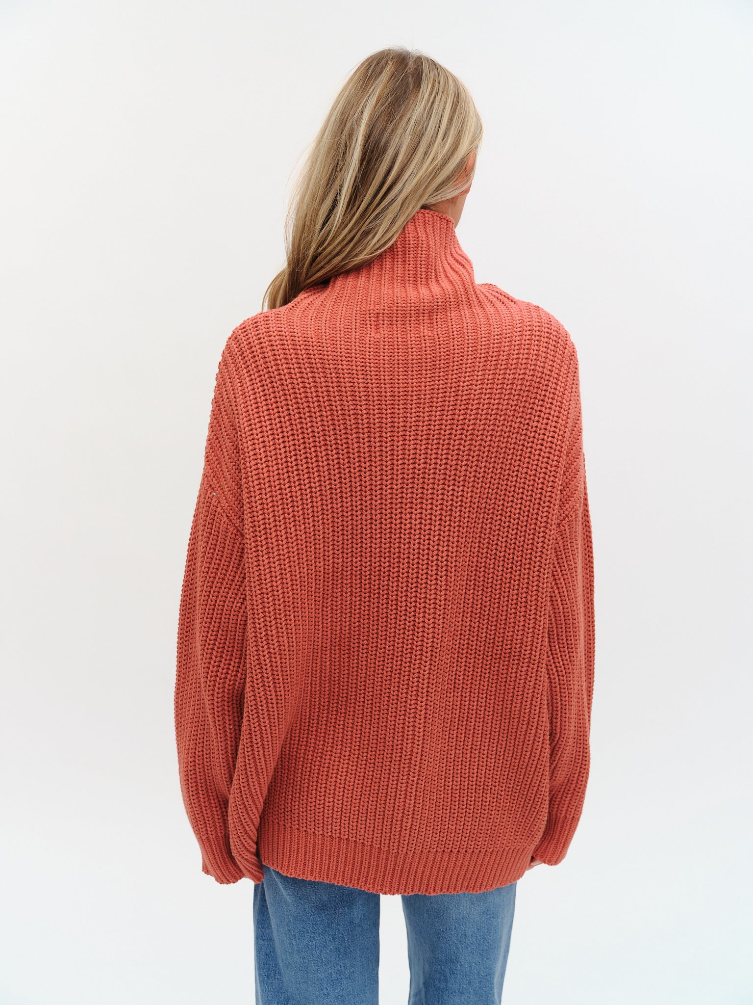 Experience ultimate comfort with the Delaney Sweater. This oversized, cozy piece features a soft fabric and a warm turtleneck, perfect for chilly days. The relaxed drop shoulder design enhances its laid-back vibe, while the ribbed texture adds subtle detail. Ideal for layering or wearing on its own, this sweater combines style and softness effortlessly.